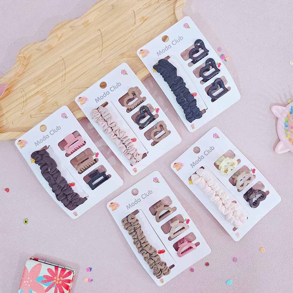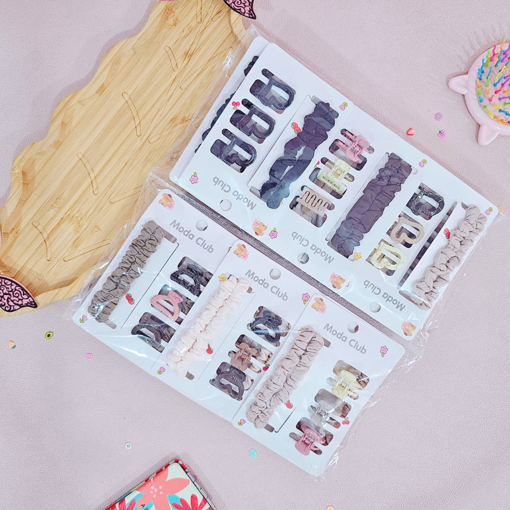 (Pack x 12 Blister. Cada blíster cuenta con 3 hebillas en distintas formas y colitas para el pelo . Ideal para realizar peinados).
