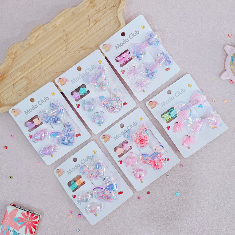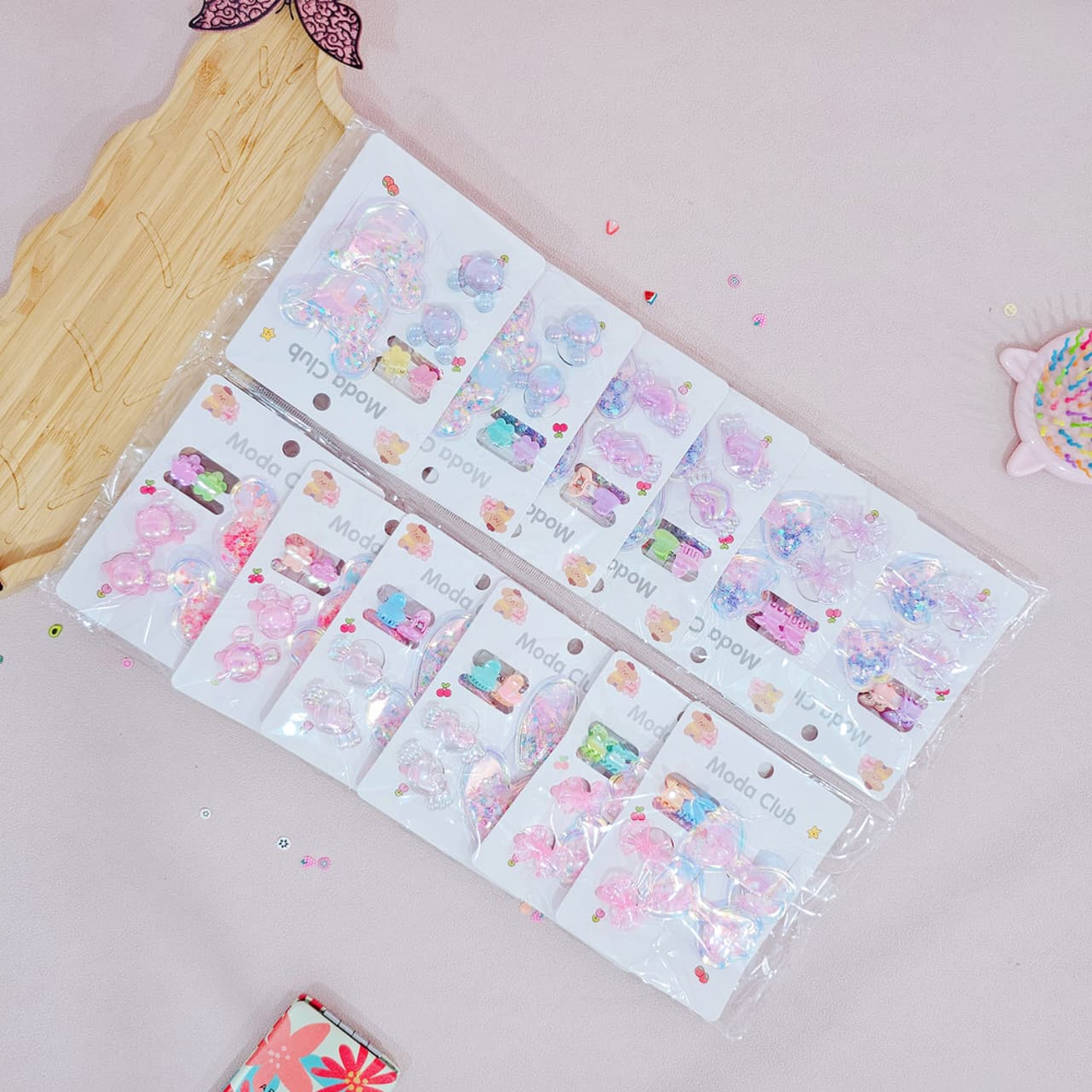 (Pack x 12 Blíster. Cada blíster cuenta con 2 hebillas con lentejuelas en su interior, 2 mini broches y dos colitas . Ideal para realizar peinados).