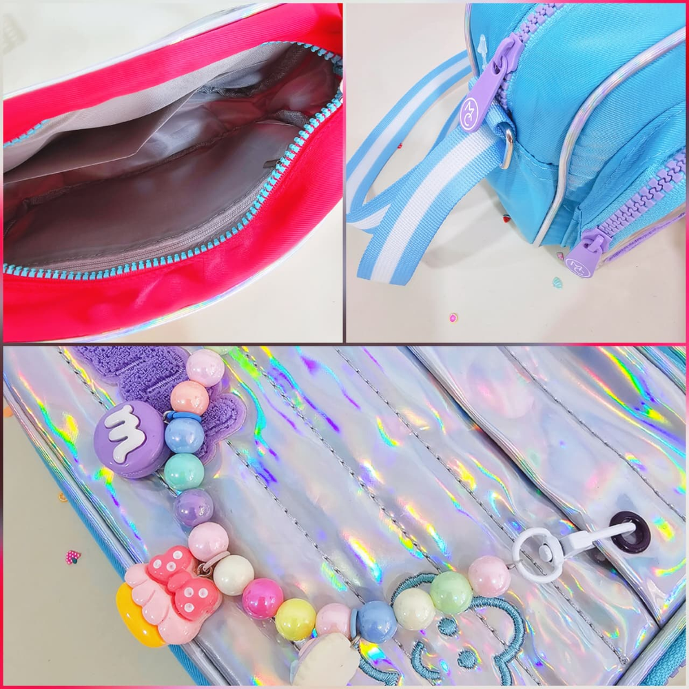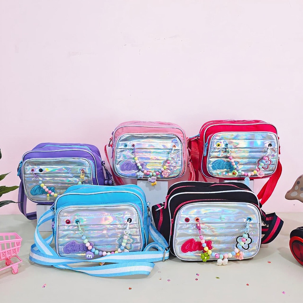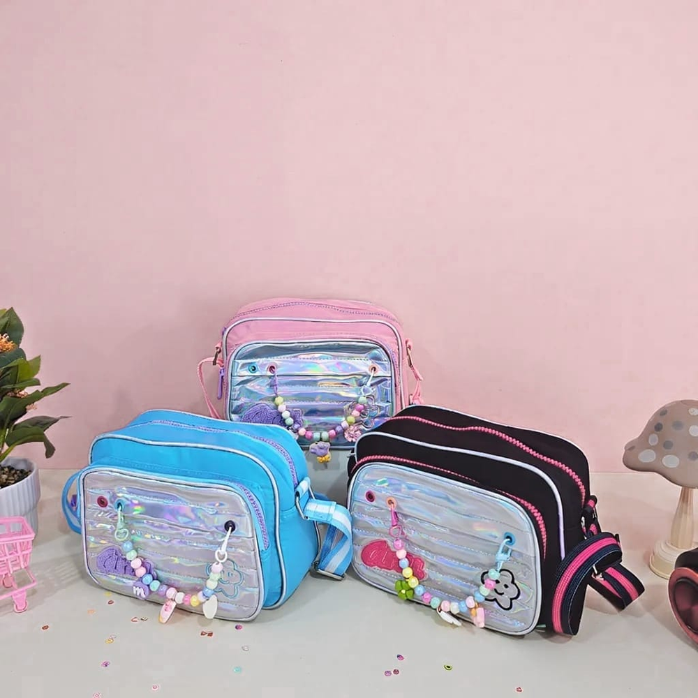 (Bandolera ideal para niñas y teens, disponibles en 5 colores: rosa, fucsia, lila, verde agua y negro. En su interior hay 2 compartimentos 1 bolsillo con cierre, en la parte externa hay 1 bolsillo grande. Tiene correa ajustable en color haciendo juego. Incluye charms de perlitas de colores y dijes para decorar).