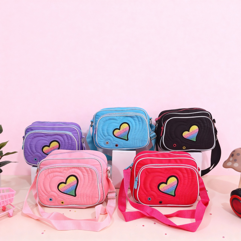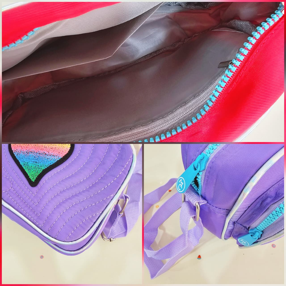 (Bandolera ideal para niñas y teens, disponibles en 5 colores: rosa, fucsia, lila, verde agua y negro. En su interior hay 2 compartimentos y 1 bolsillo con cierre, en la parte externa hay 1 bolsillo grande. Tiene correa ajustable en color haciendo juego).