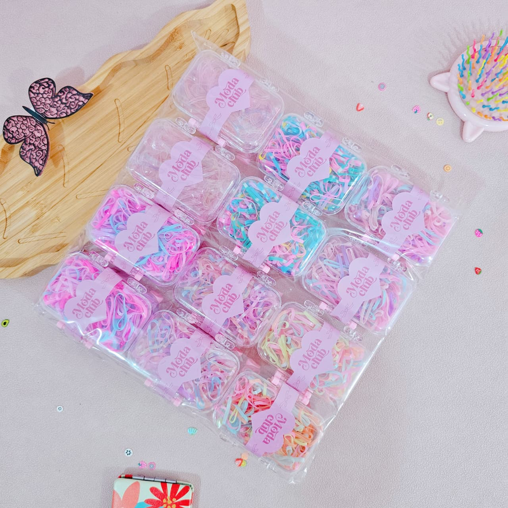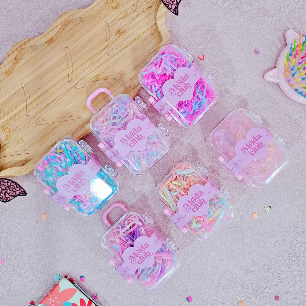 (Set de valijitas con gomitas de colores. Ideal para realizar peinados y destacar tu cabello). UT.29