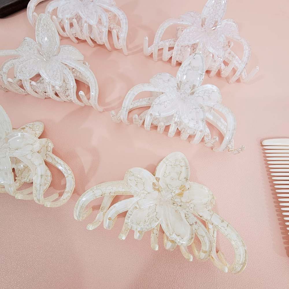 (Pack x 12 hebillas con forma de flor color tornasolado. Ideal para usar en cualquier evento o simplemente levantar tu look del día). Ut.24
