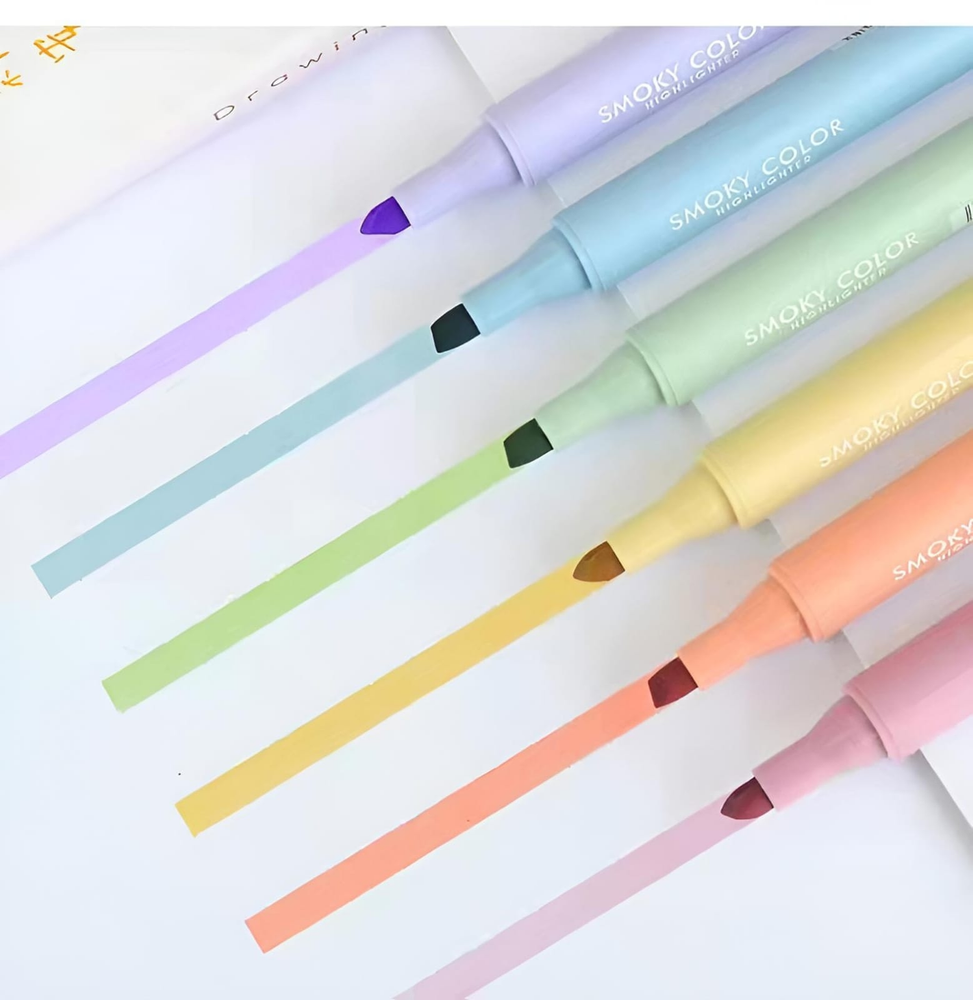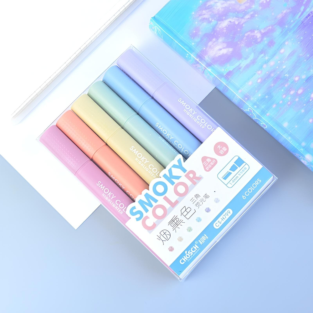 ( Set de 6 resaltadores en tonos pastel. Estos resaltadores tienen colores suaves y apagados, ideales para lettering, apuntes y proyectos creativos).