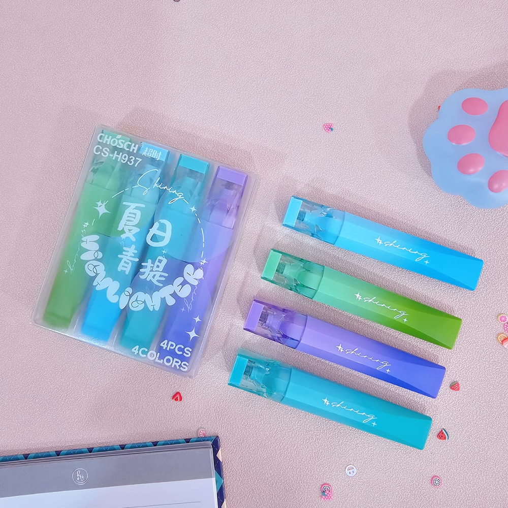 (Set de 4 resaltadores en hermosos colores. Ideal para dar un diseño único y divertido a tus apuntes). ut30