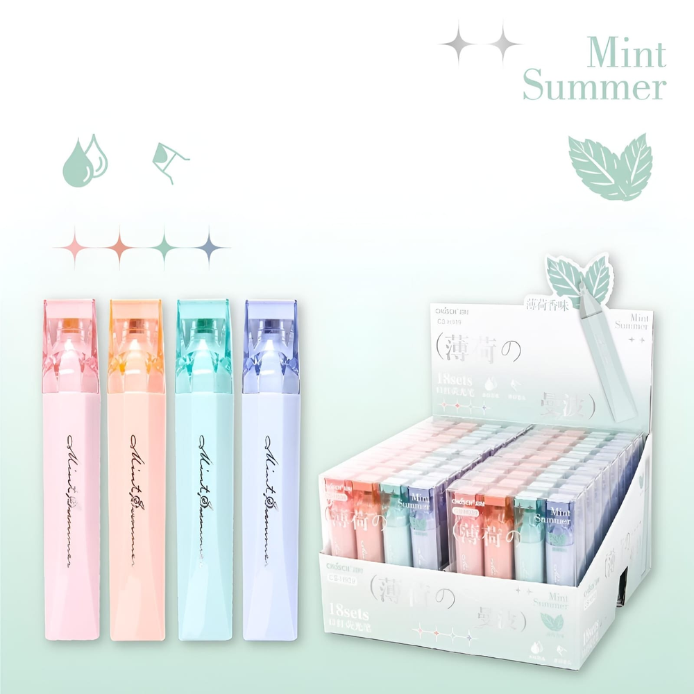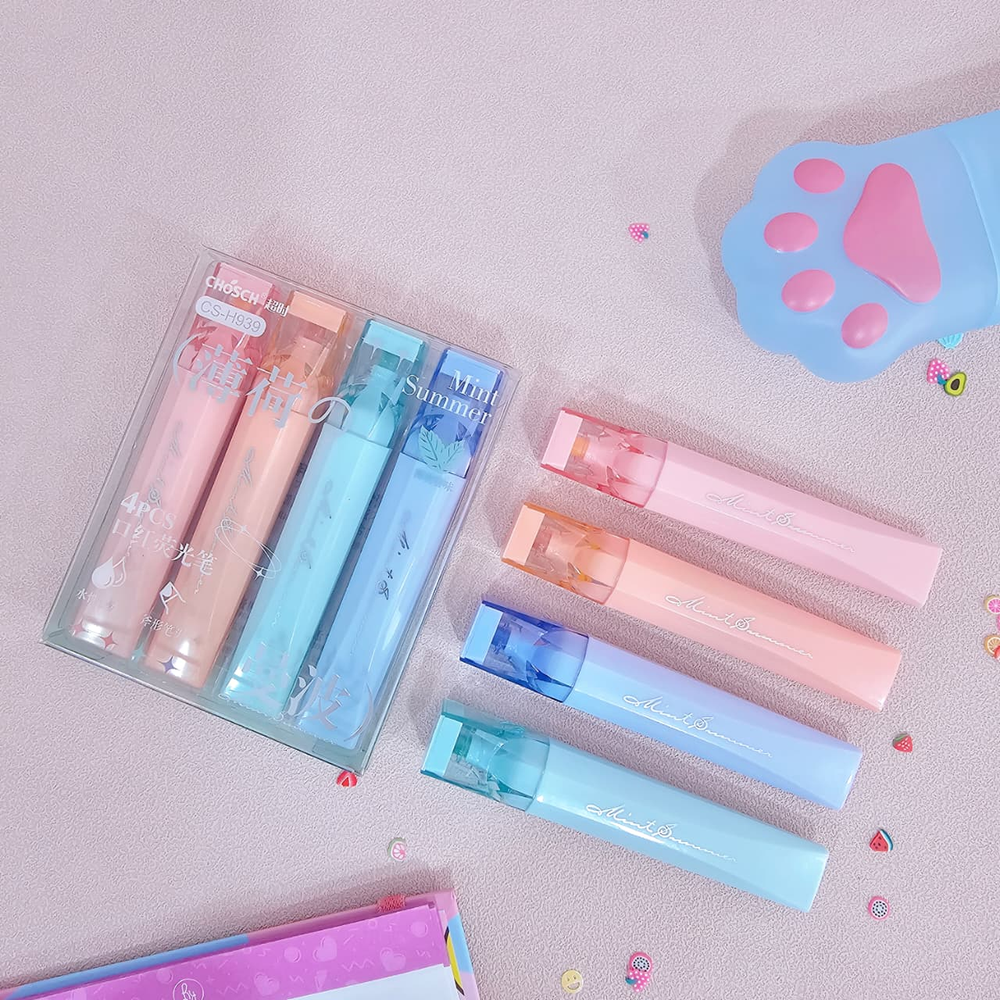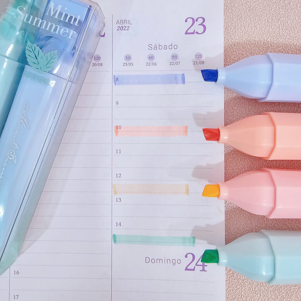 (Set de 4 resaltadores en hermosos colores pasteles y aroma a menta. Ideal para dar un diseño único y divertido a tus apuntes). ut30