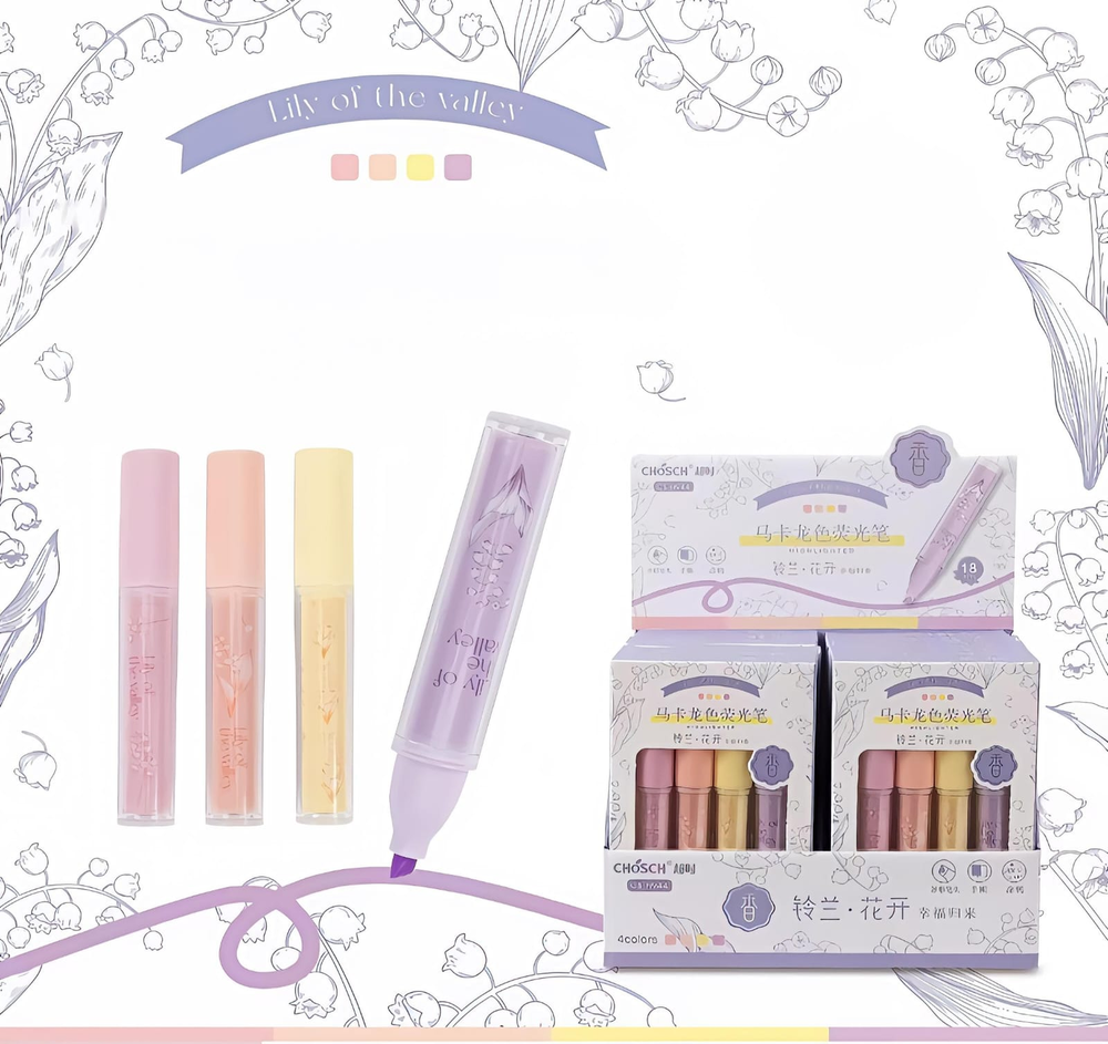(Set de 4 resaltadores en hermosos colores y leve aroma floral. Ideal para dar un diseño único y divertido a tus apuntes). ut30