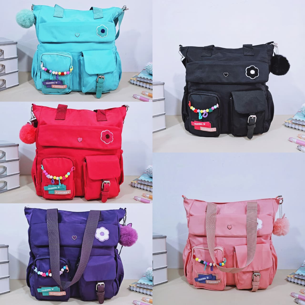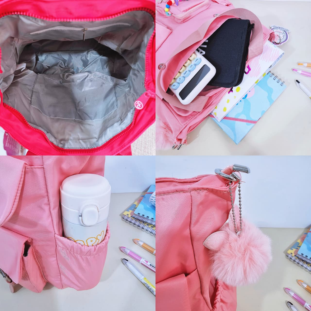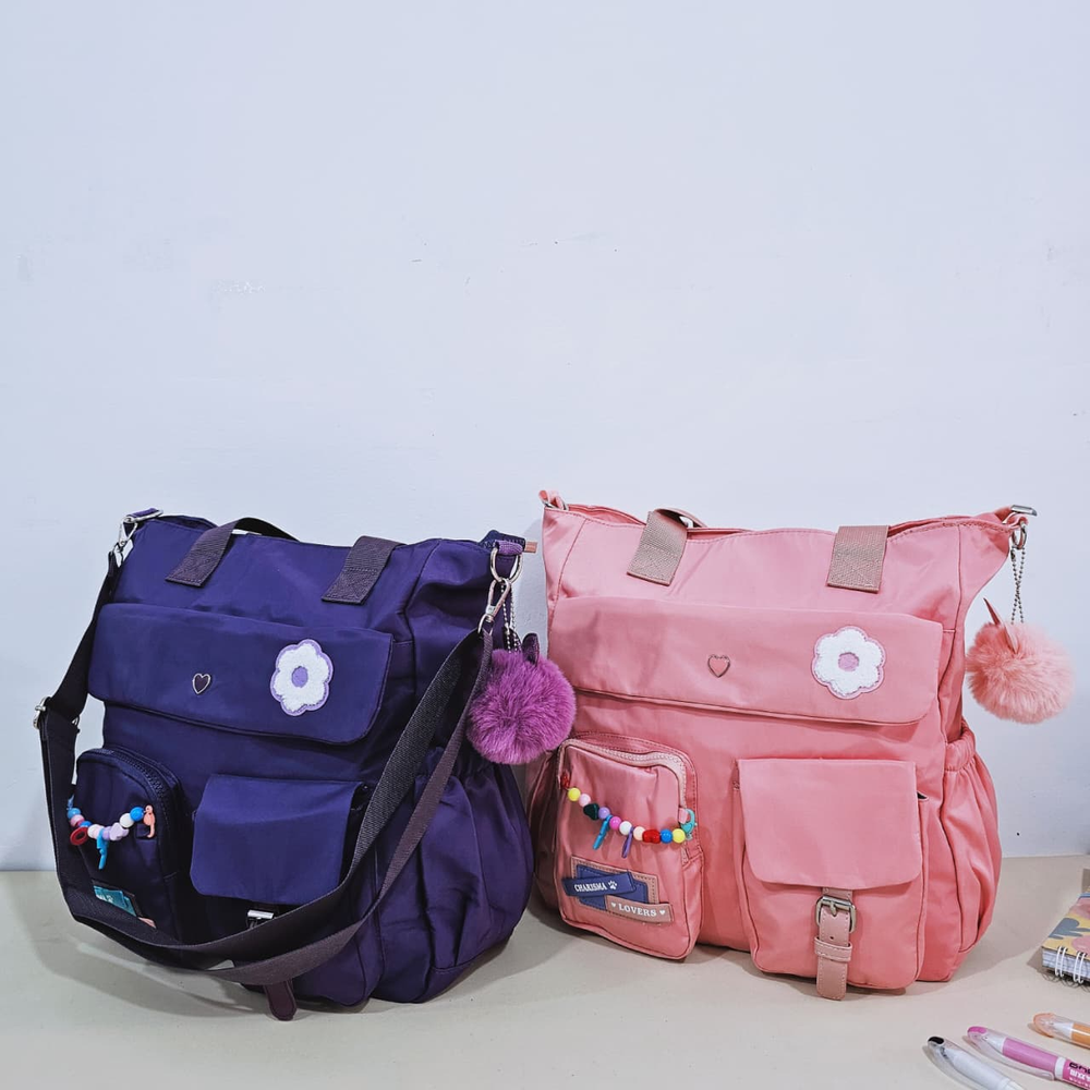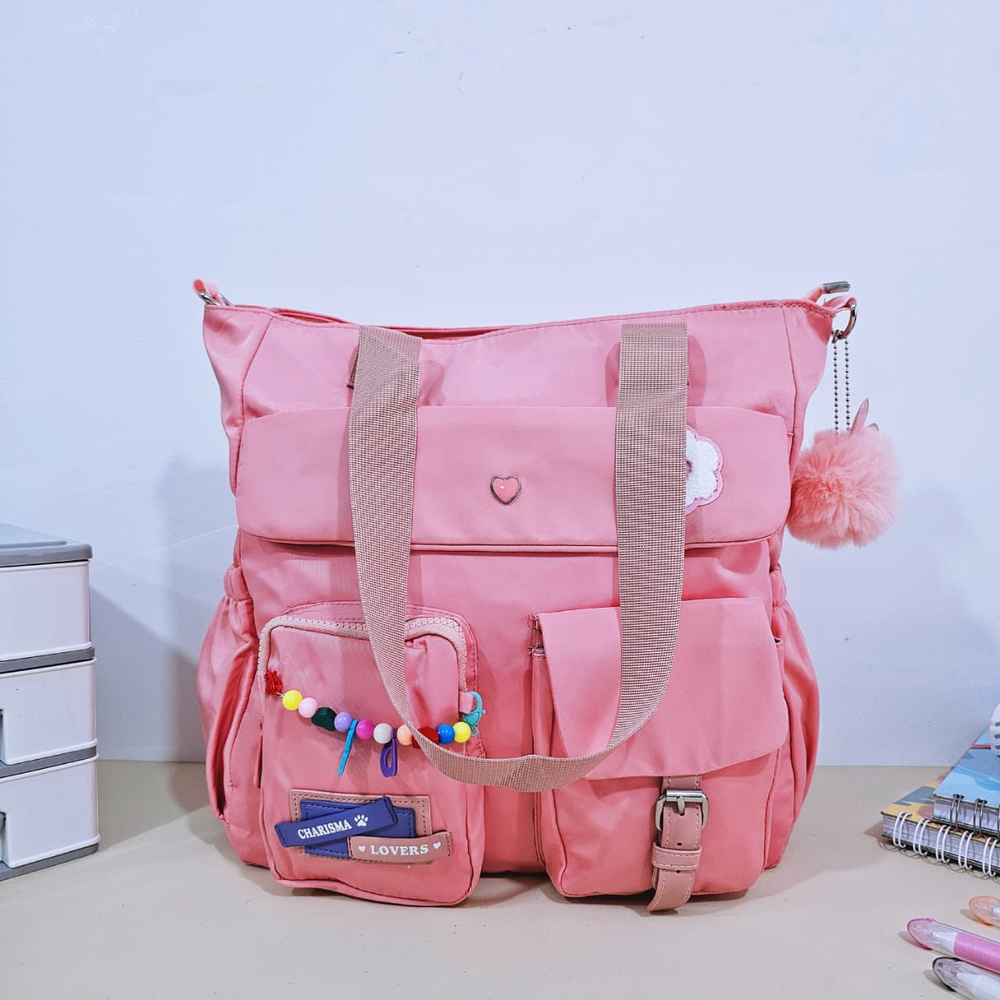 (Bolso grande disponible en 5 colores diferentes. Cuenta con un amplio compartimiento con dos bolsillos internos, un bolsillo frontal amplio + dos pequeños y dos bolsillos laterales, también incluye correa larga. Ideal para llevar cosas como maquillaje, celular o billetera).