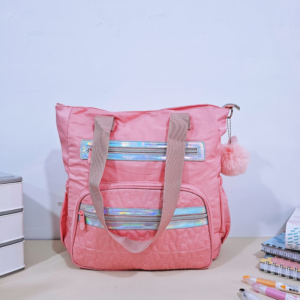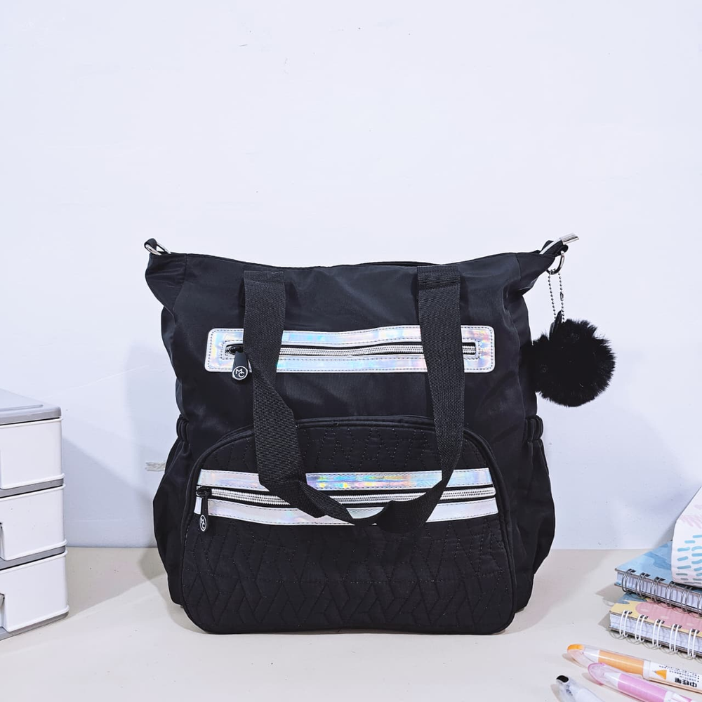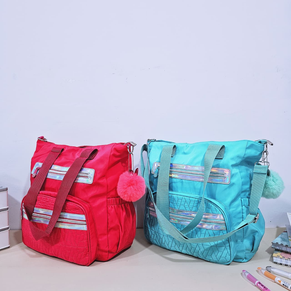 (Bolso grande disponible en 5 colores diferentes. Cuenta con un amplio compartimiento con dos bolsillos internos, dos bolsillos frontales con cierre y dos laterales, también incluye una corre larga. Ideal para llevar cosas como maquillaje, celular o billetera).