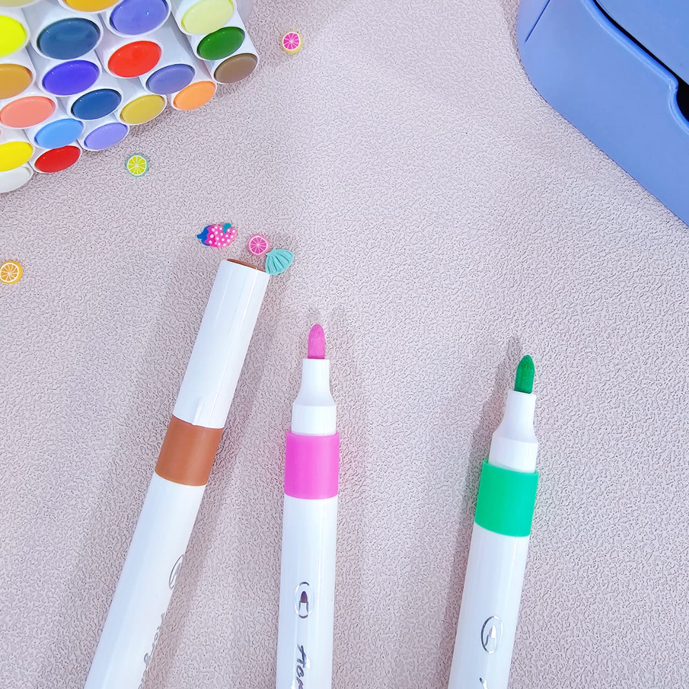 (Contienen pintura acrílica a base de agua, lo que los hace no tóxicos y fáciles de limpiar. Se pueden usar en una variedad de superficies, como papel, madera, tela, vidrio y cerámica).