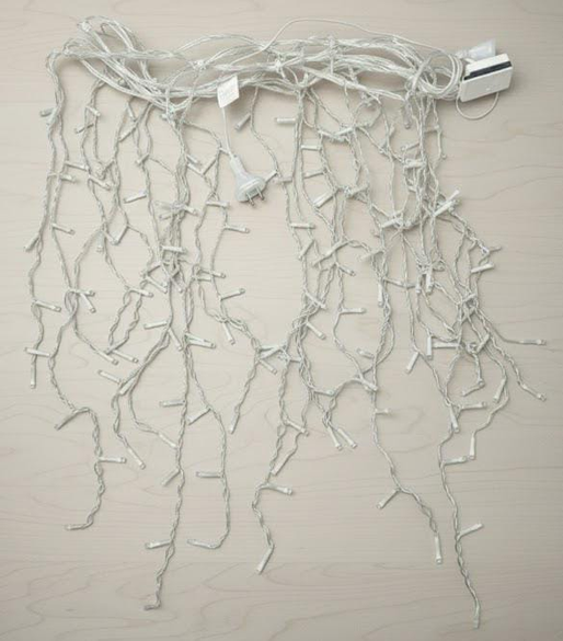 (Cortina de luces LED Multicolor, ideales para decorar, tiene 3.12 metros de largo aproximadamente y 47 cm de alto. Cuenta con tiras lo que genera un efecto visual similar a una cortina. Cuentan con diferentes modos de iluminación, como destellos o transiciones suaves, También incluye un alargue).
