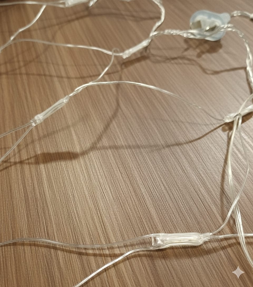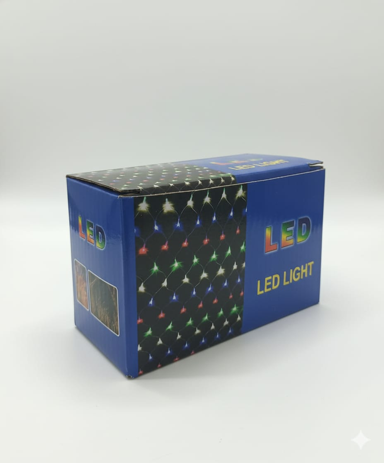 (Cortina de luces LED Cálida en forma de red, ideales para decorar, tiene 1,59 metros de largo aproximadamente. Cuentan con diferentes modos de iluminación, como destellos o transiciones suaves, También incluye una extensión para conectar otras luces).
