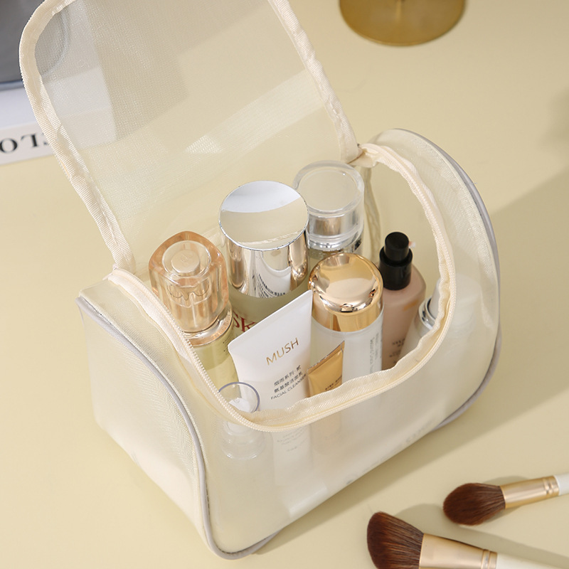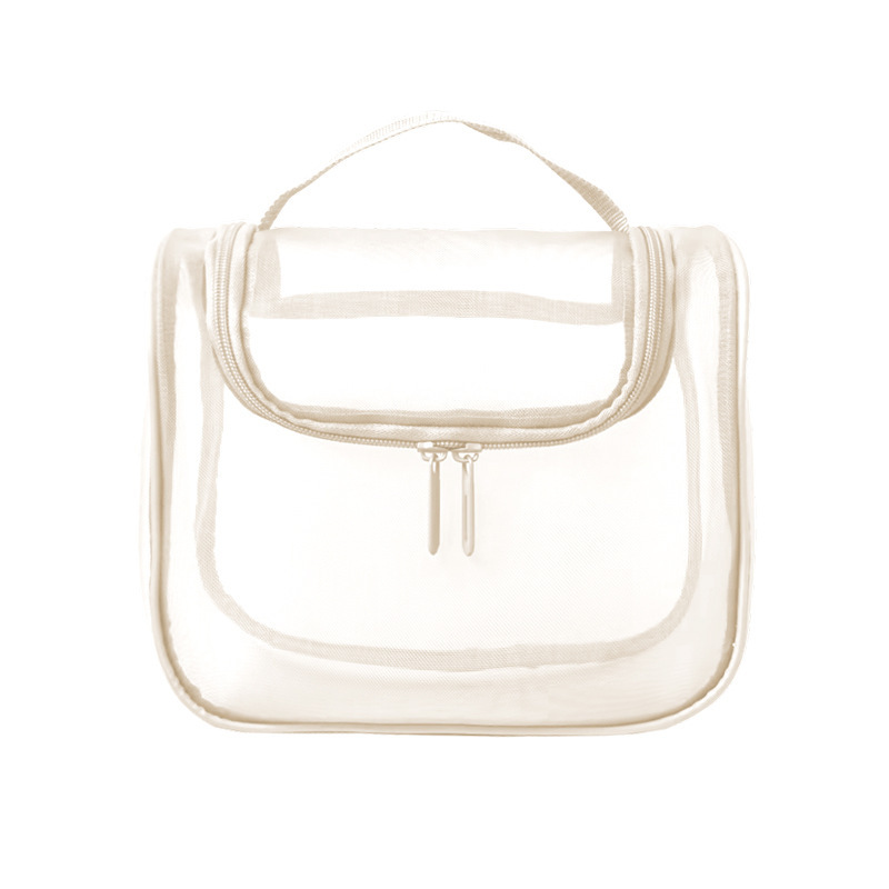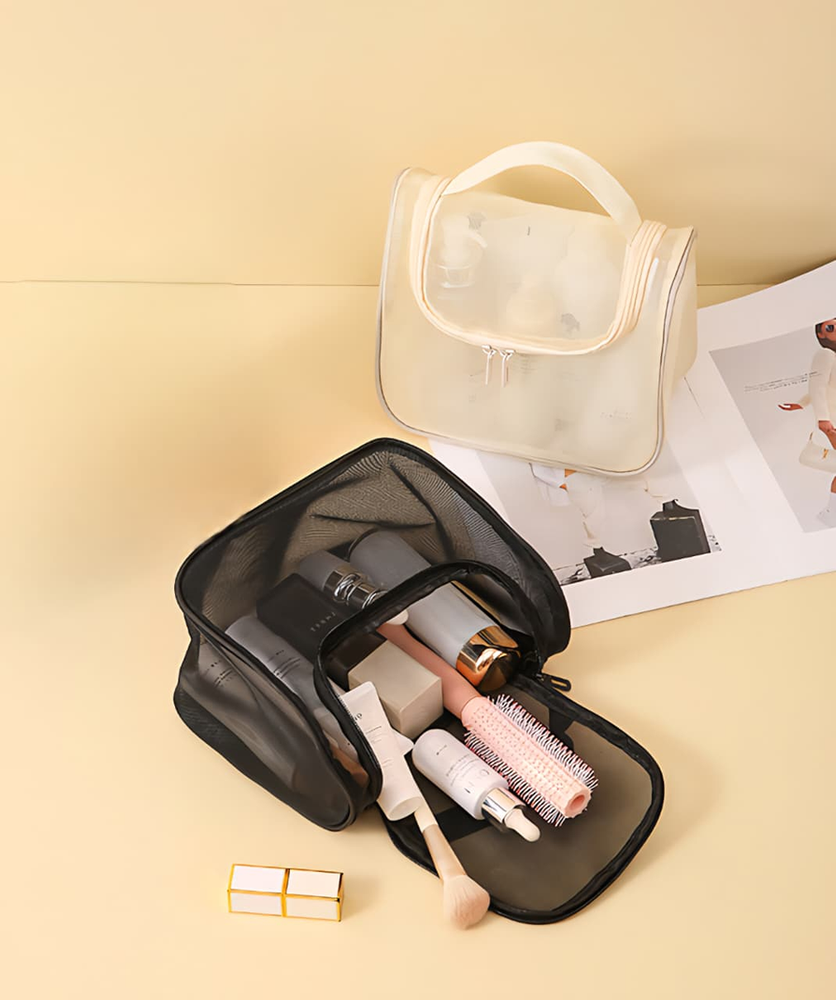 (Portacosmetico grande que sirve para organizar cualquier articulo en su interior. Ideal para utilizar en viajes. Cuenta con 1 compartimiento grandes y manija para poder transportarlo, por su material se puede ver su interior).