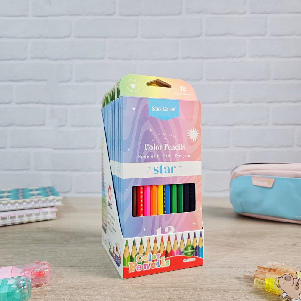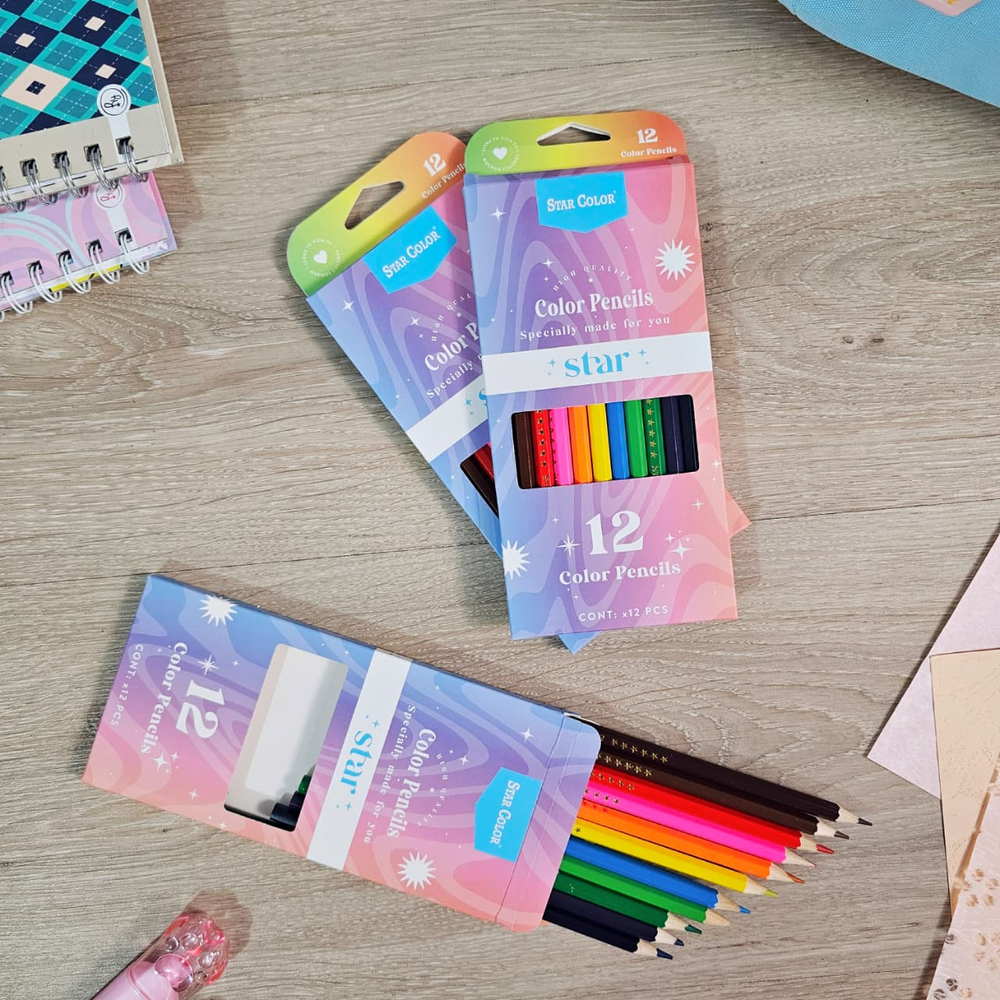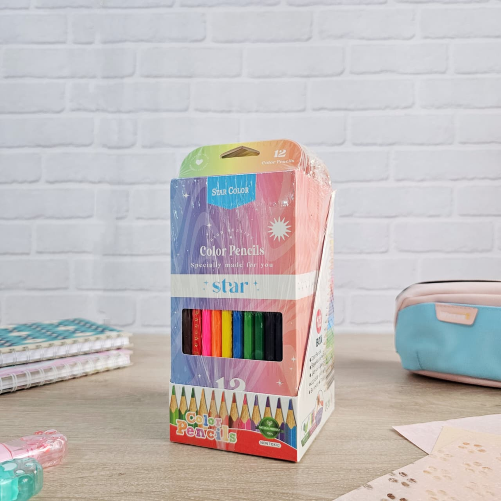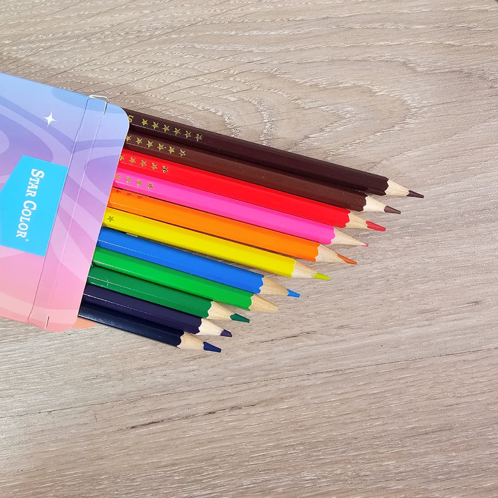 (Caja con 12 unidades de lápices colores surtidos,, mina resistente y suave. Ideal para darle color a tus dibujos).