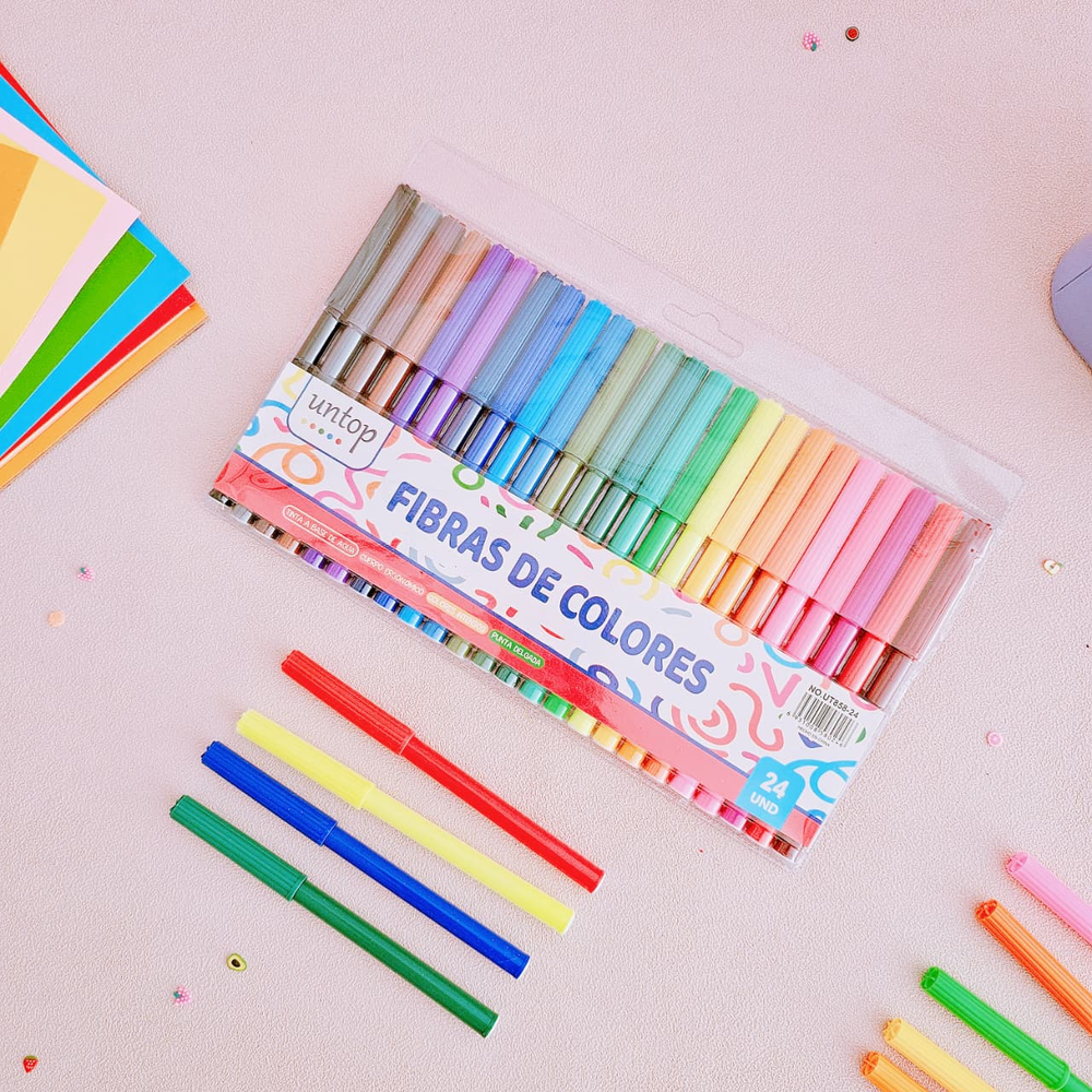 ( Cuentan con una punta que permite una aplicación suave y uniforme de la tinta sobre el papel u otras superficies. Se utilizan principalmente para colorear, dibujar, diseñar y escribir. Son ideales para proyectos creativos, colorear mandalas, hacer ilustraciones o simplemente para tomar apuntes y marcar). (Ut31)