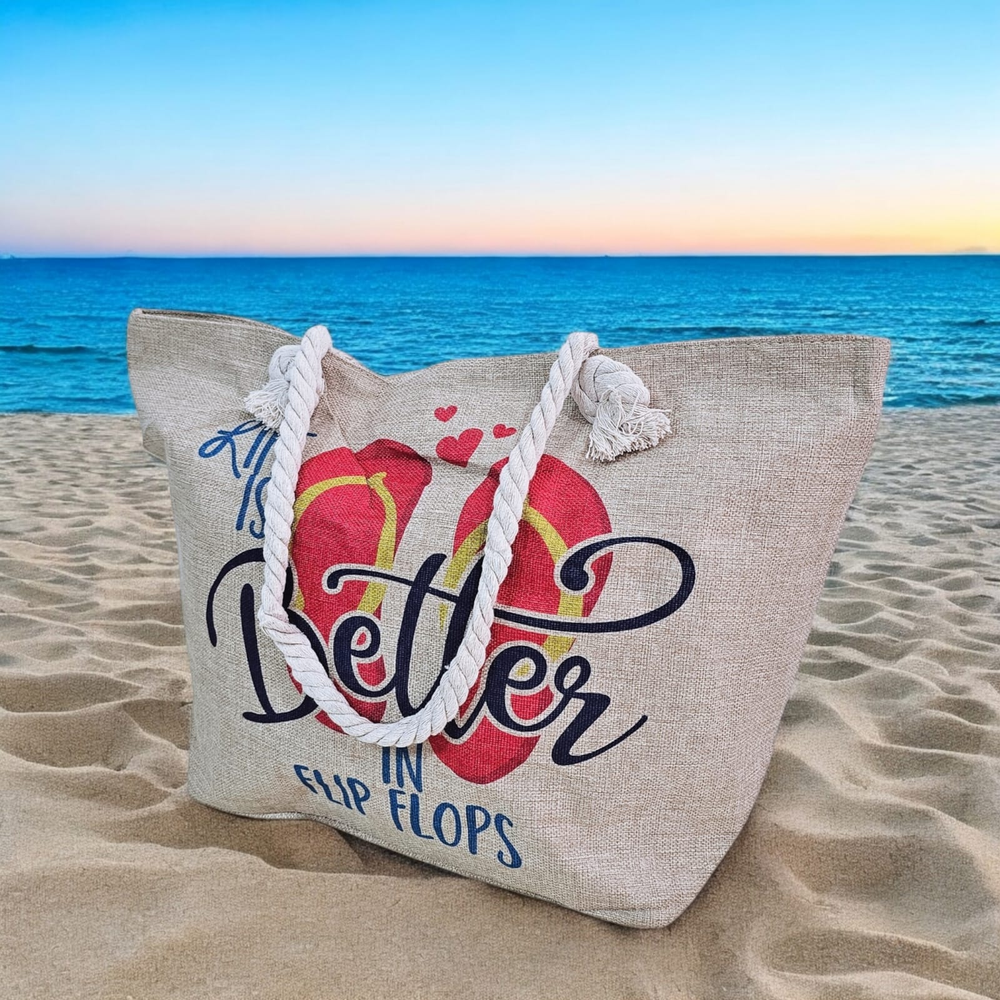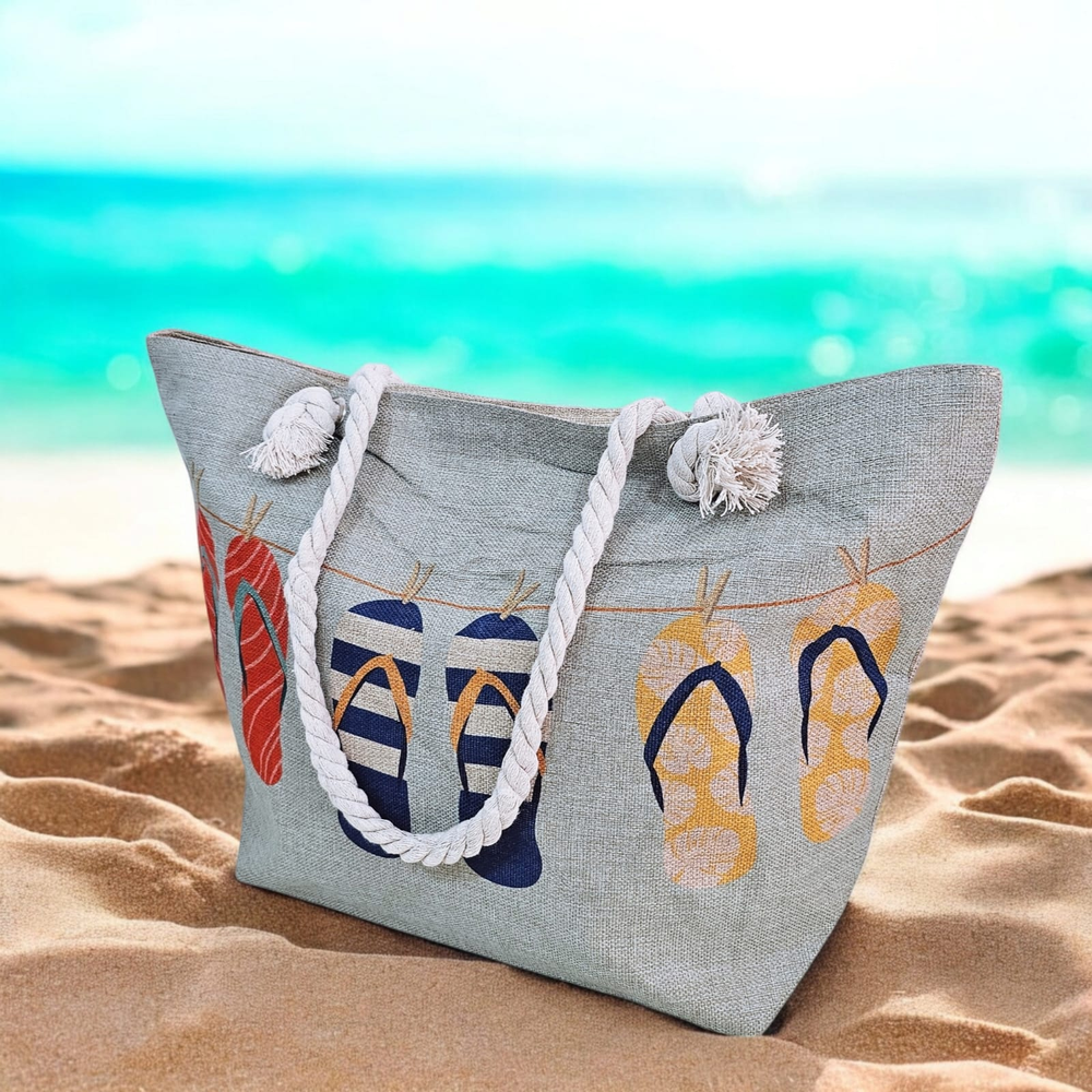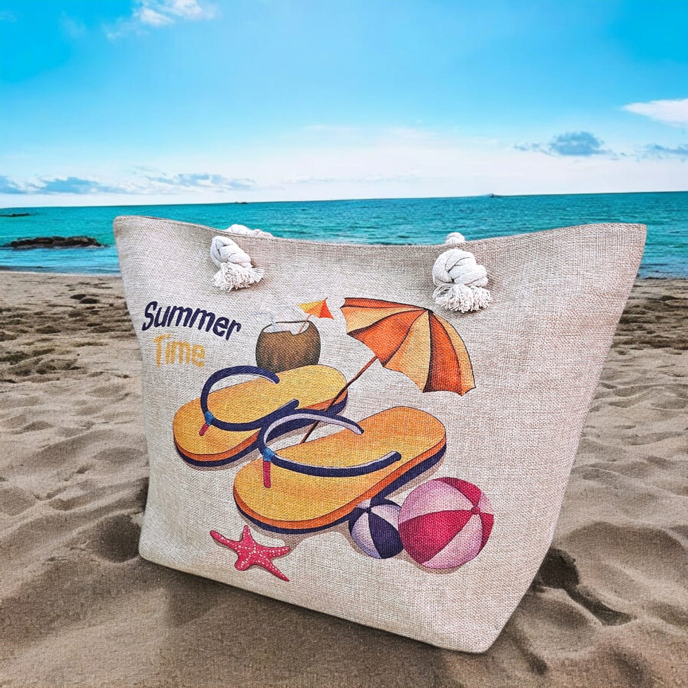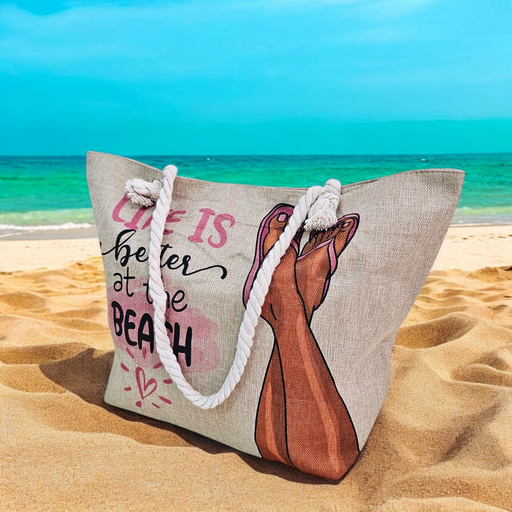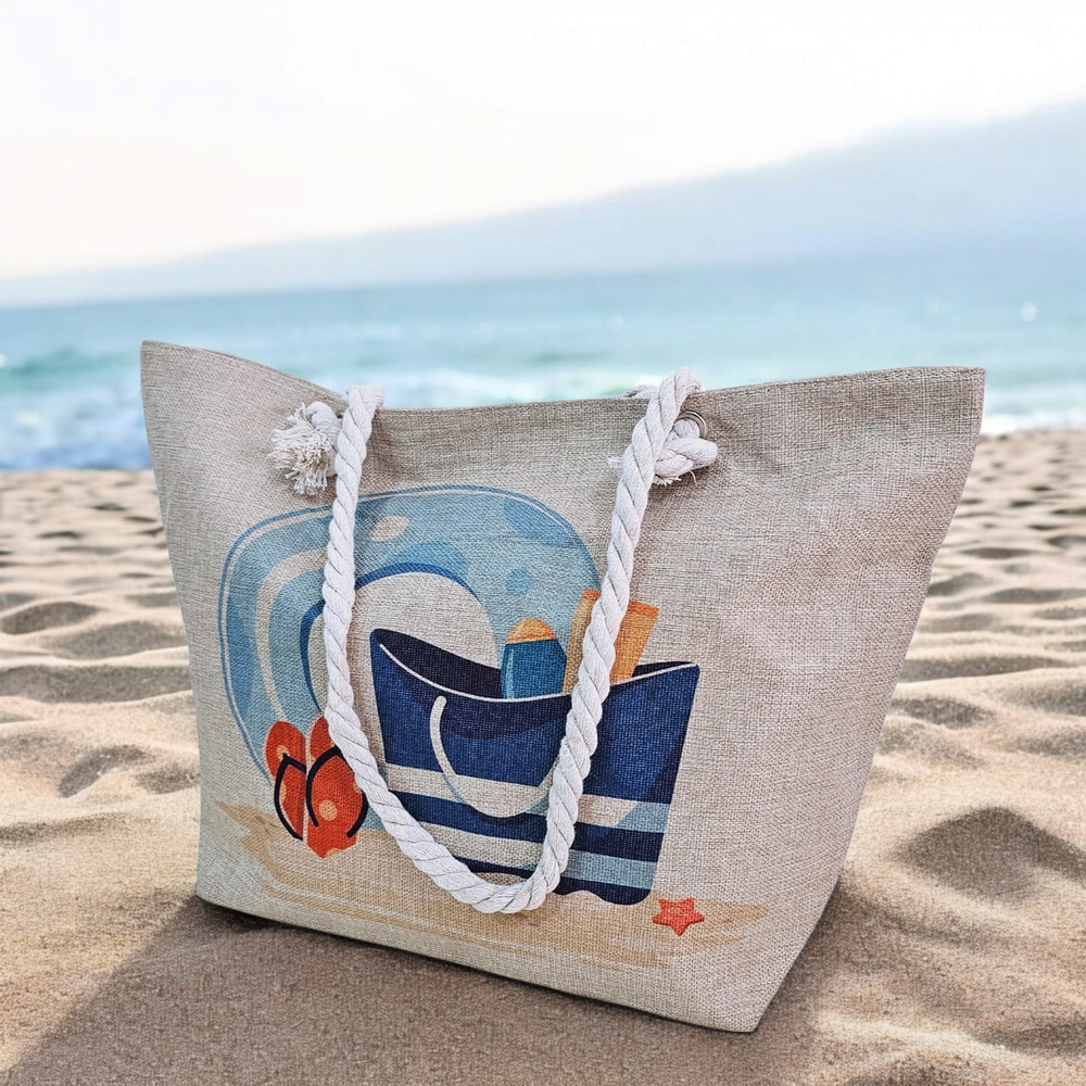 (Bolso playero diseñado para llevar fácilmente toallas, trajes de baño, protector solar, gafas, juguetes de playa y otros elementos esenciales a la playa o la piscina. Cuenta con 1 compartimiento interior. Aunque ideal para la playa, también puede usarse para compras o viajes, gracias a su ligereza, resistencia y facilidad de limpieza).