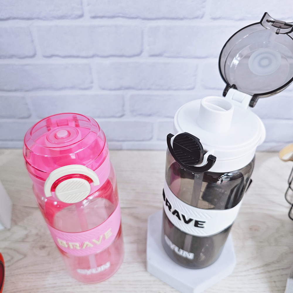 (Esta botella cuenta con una capacidad de 800ml, tapa hermética, pico de succión y sorbete. Disponible en 4 colores diferentes: negro, blanco, verde y rosa).
