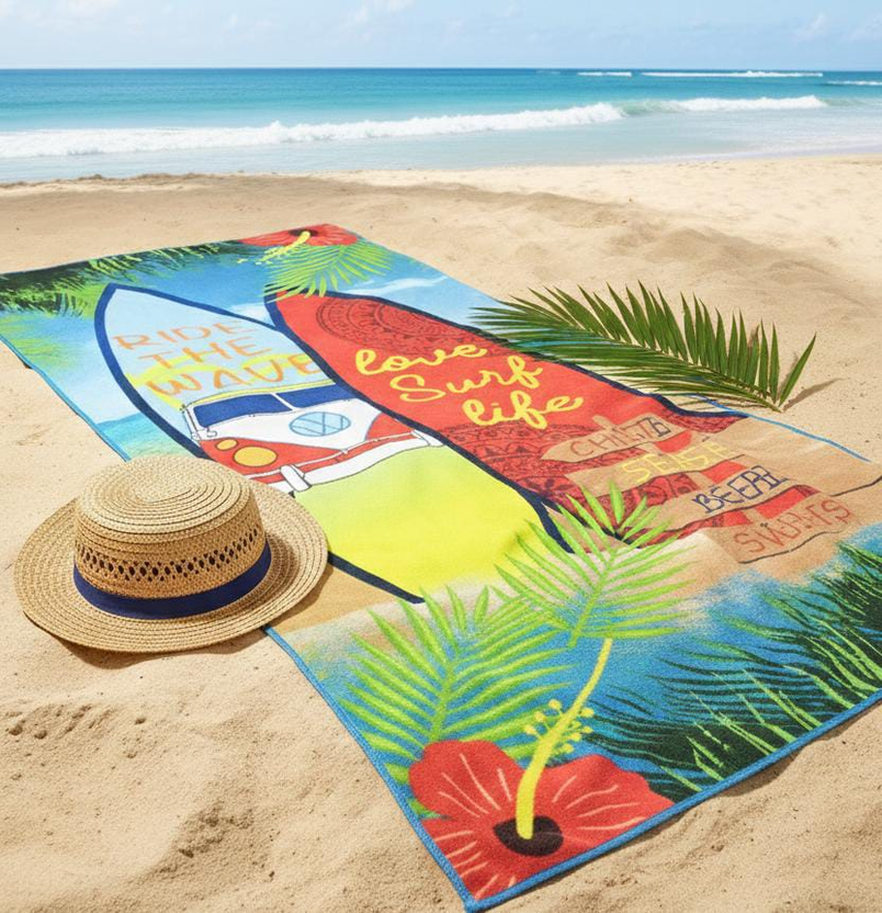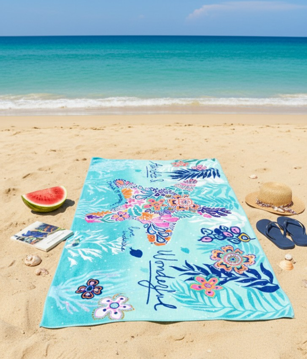 (Toallón de tela super suave, disponible en varias estampas y colores).