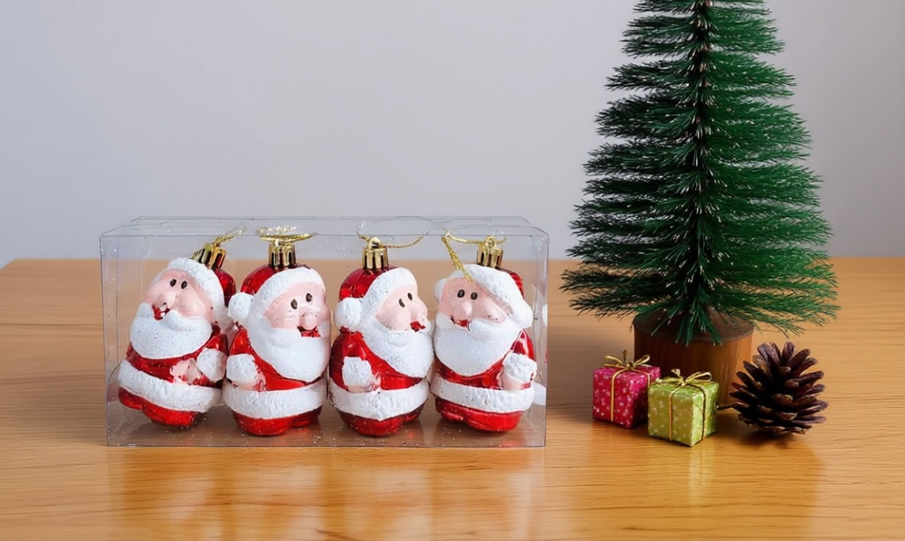 (Cada caja cuenta con 4Pcs. de adornos navideños en forma de papá noel para decorar el árbol de navidad).