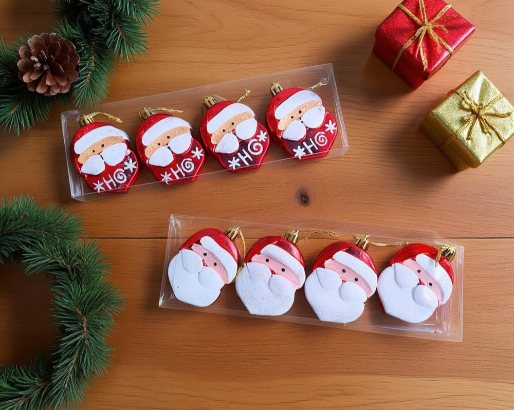 (Cada caja cuenta con 4Pcs. de adornos navideños en forma de papá noel para decorar el árbol de navidad).