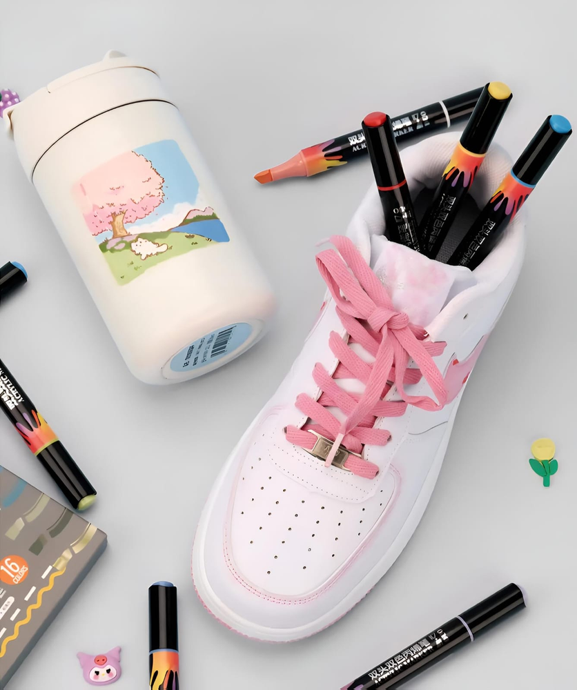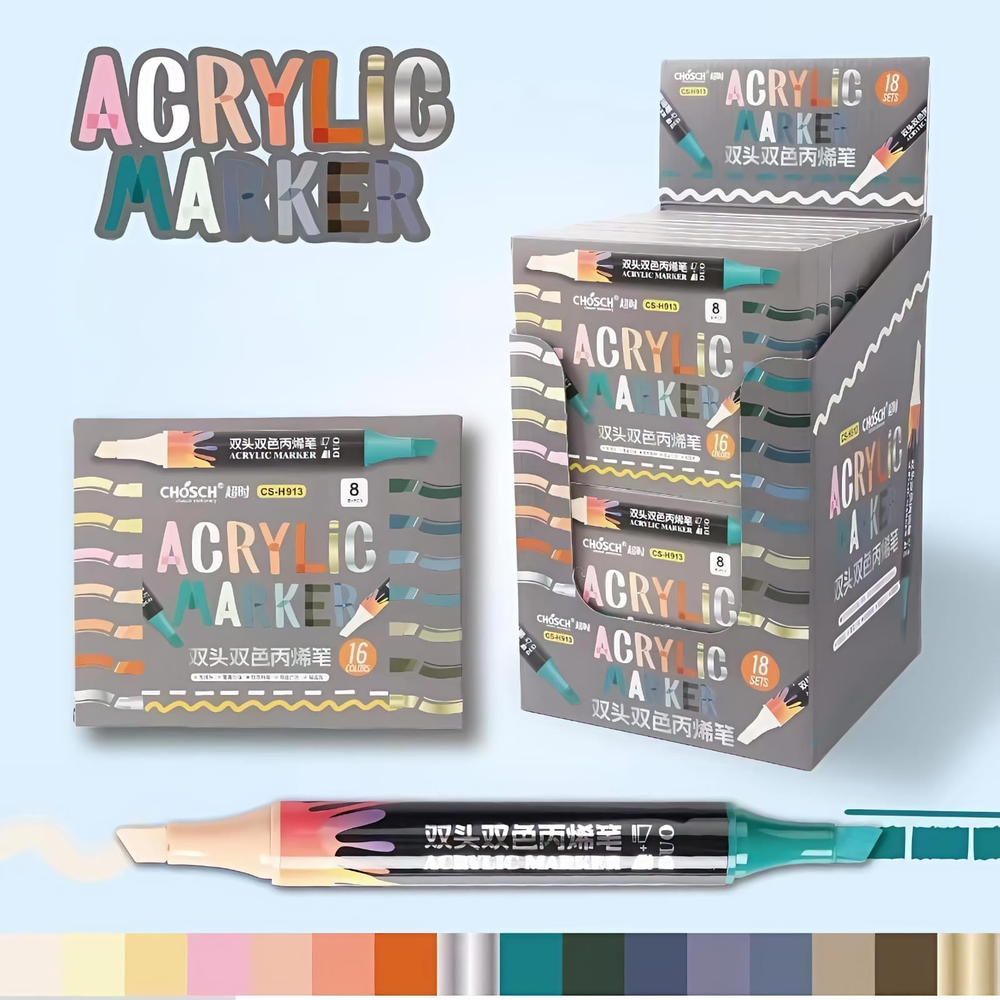 (Este Set incluye en total 16 colores, son ideales para pintar una gran variedad de superficies tanto oscuras como claras, la punta de los marcadores es de tipo biselada, lo que permite una aplicación suave y precisa, ideal para lettering y detalles artísticos).