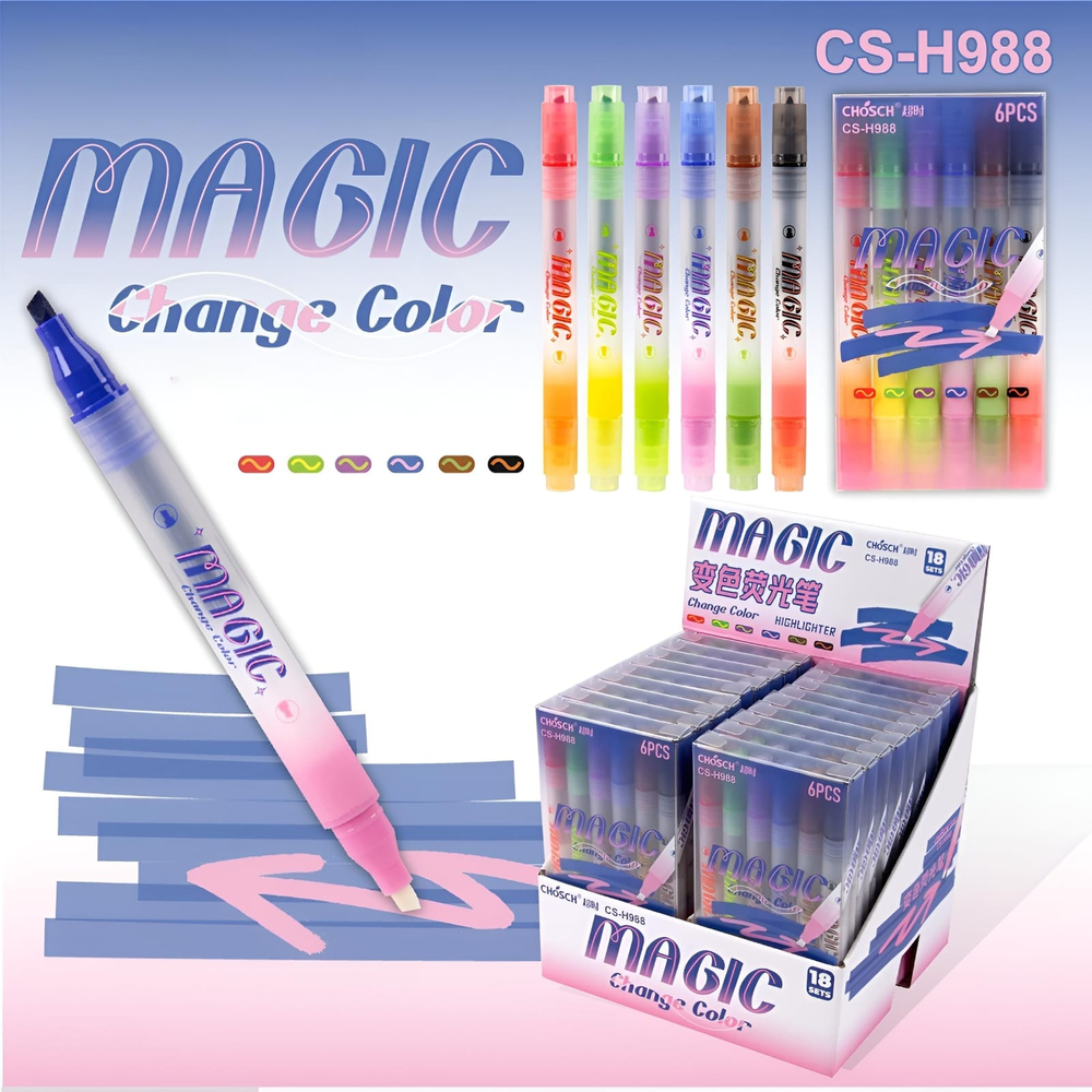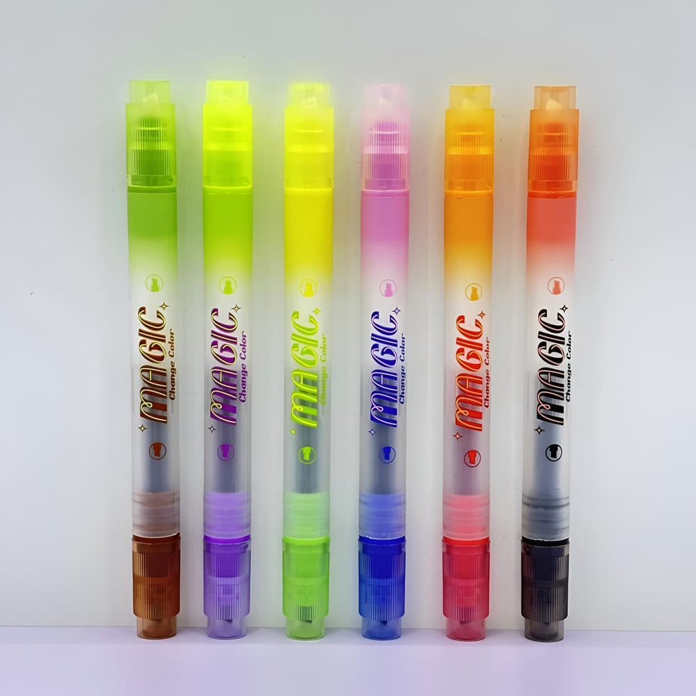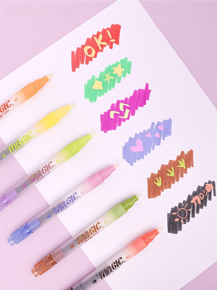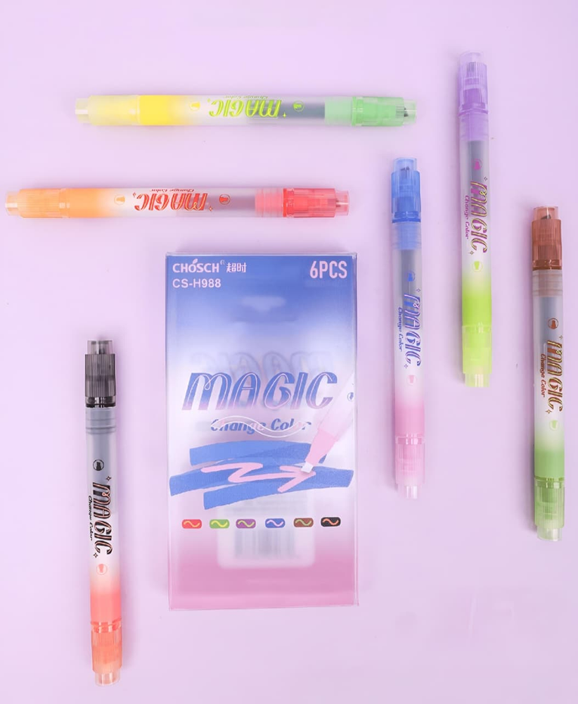 (Resaltadores doble punta, Cada marcador contiene una tinta que cambia de color al pasar el marcador especial incluido en el set por encima. Son ideales para dibujar, colorear y crear efectos artísticos).