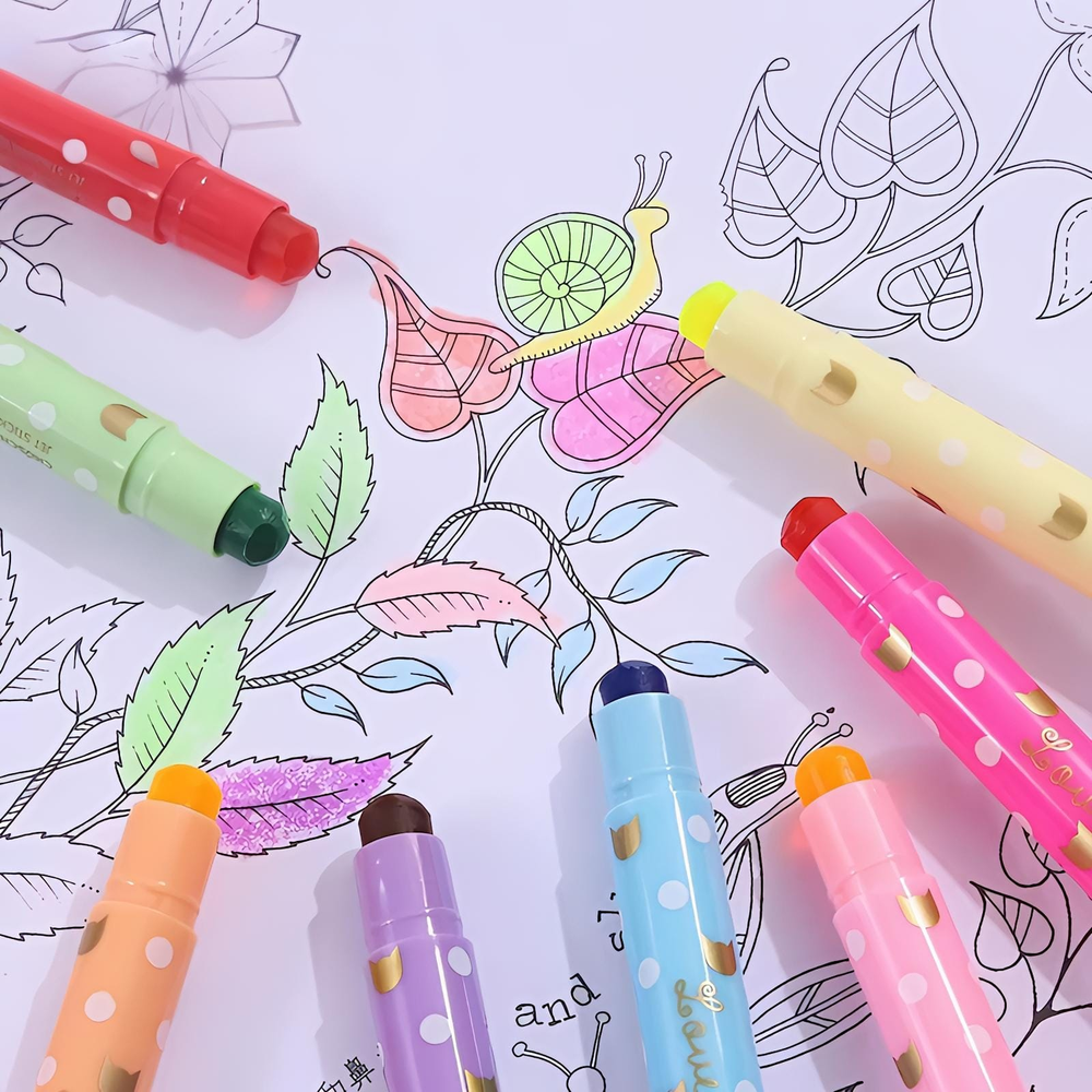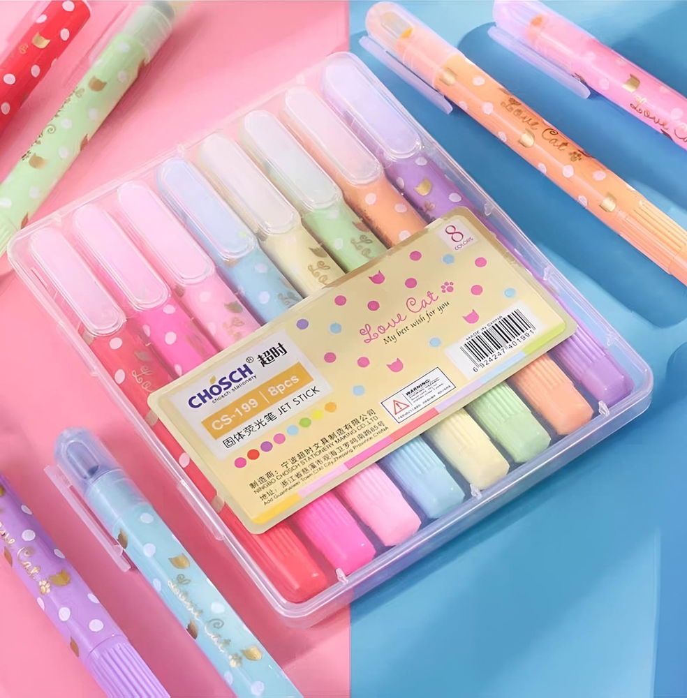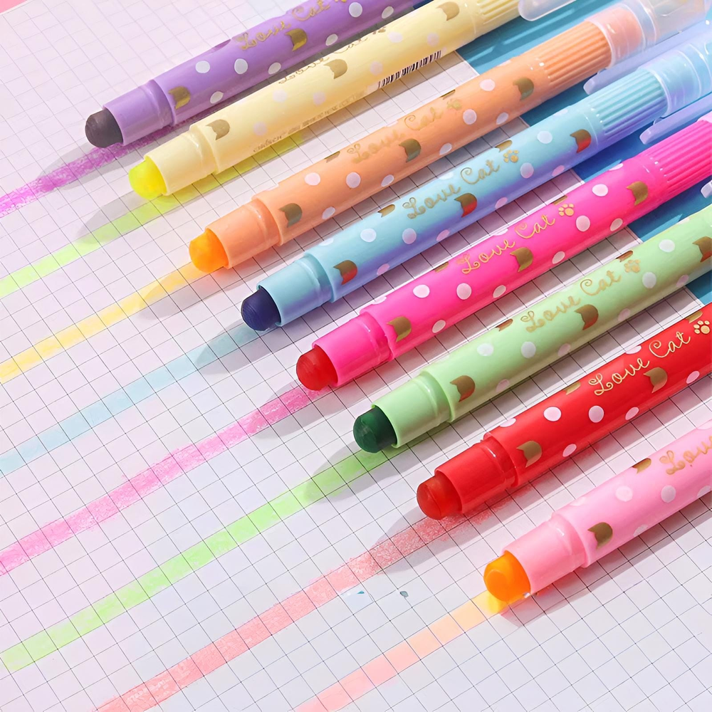 (Resaltadores tipo crayón. Utilizan una fórmula de cera que proporciona colores vibrantes y opacos. No traspasan el papel, lo que los hace ideales para libros, biblias y documentos delicados).