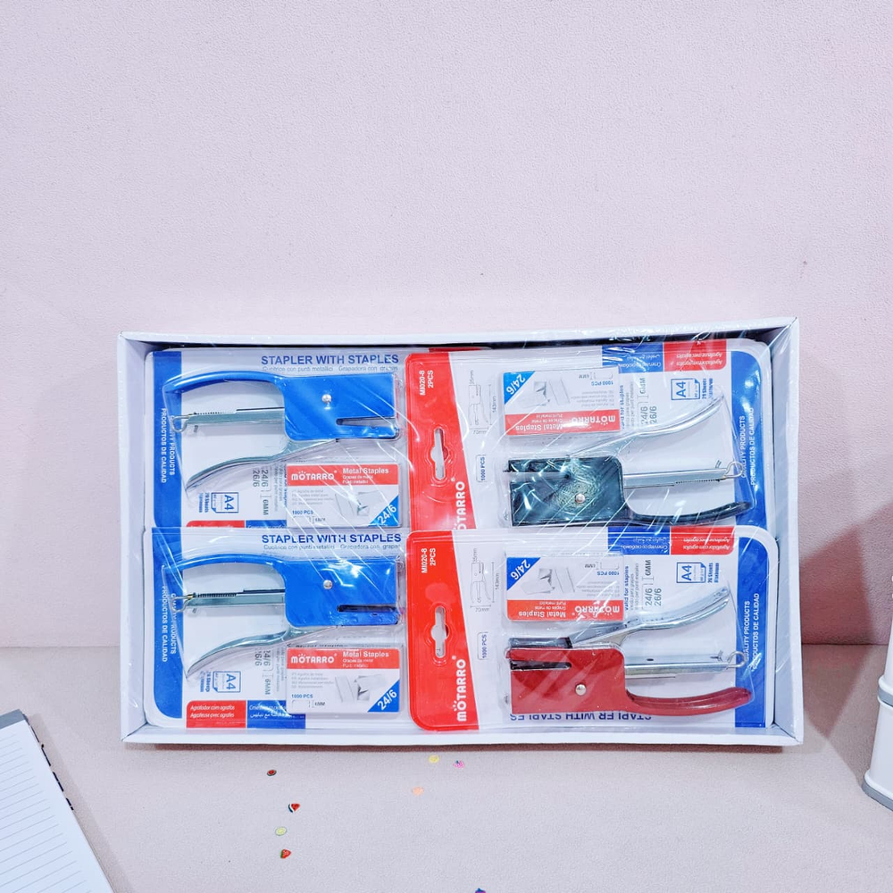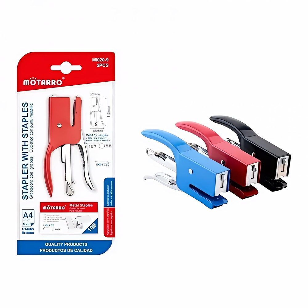 (Abrochadora mediana disponible en 3 colores: azul, rojo y negro. Incluye ganchitos)