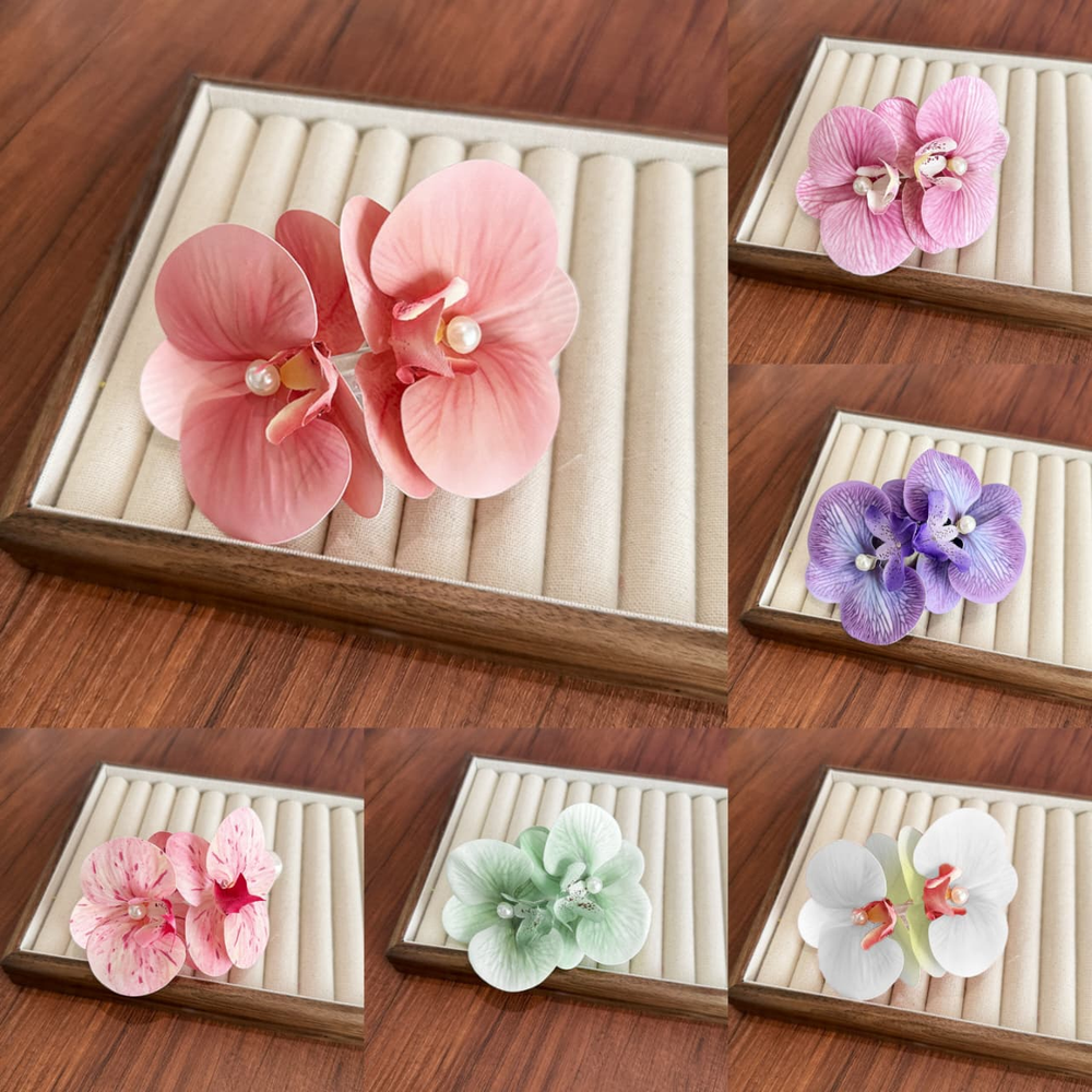 (Pack x 12 hebillas con forma de flor de varios colores. Ideal para usar en cualquier evento o simplemente levantar tu look del día).