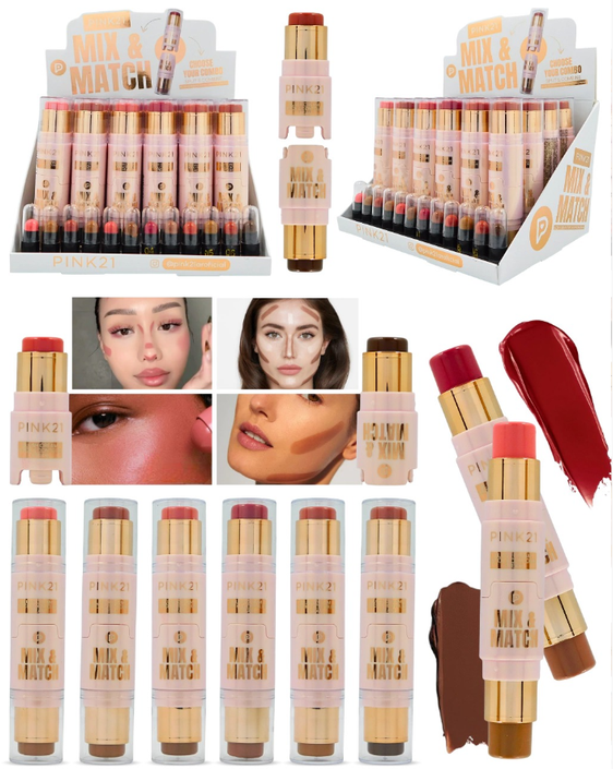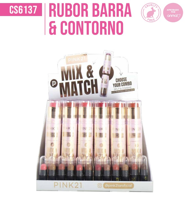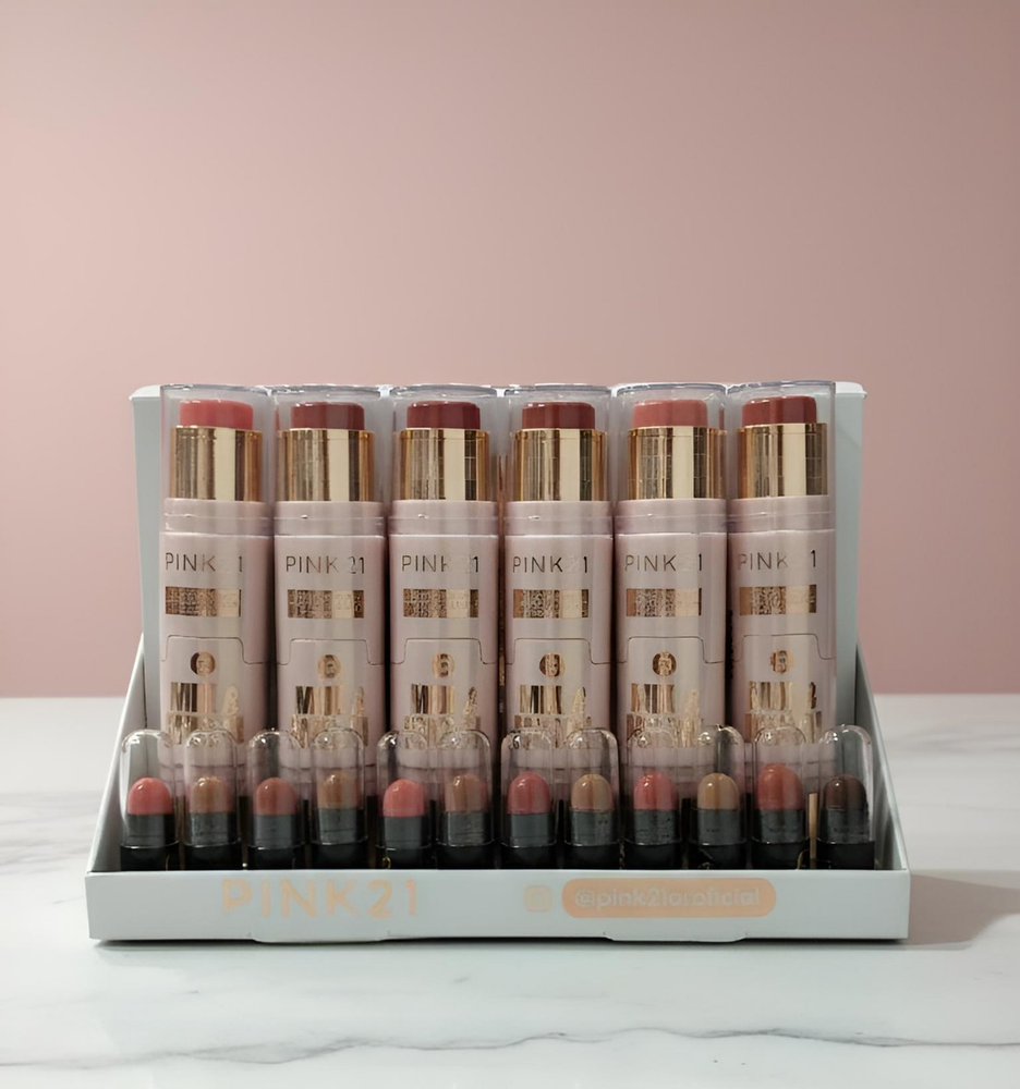 (Caja x 24U. Rubor y contorno en barra "Pink 21" Encastrables: se pueden separar y encastrar con el color que desees).