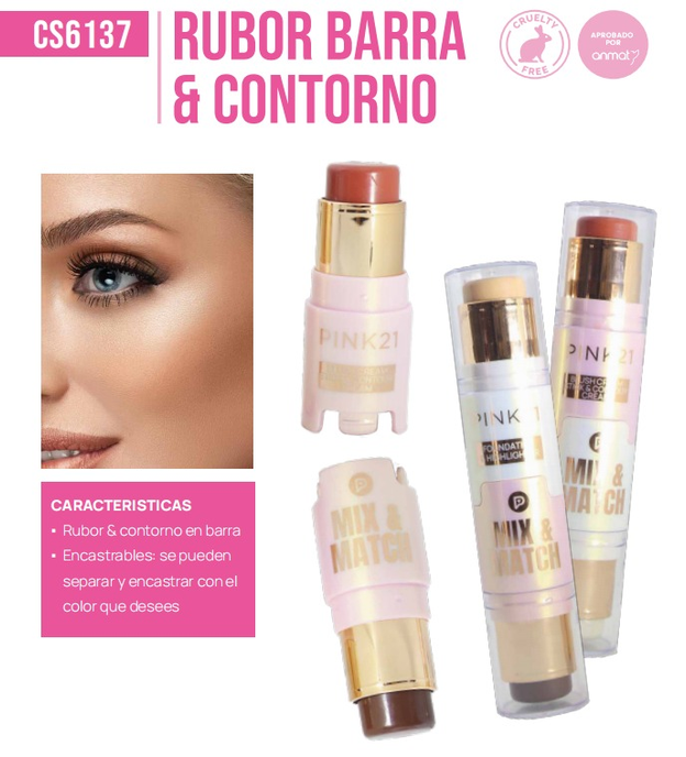 (Rubor y contorno en barra "Pink 21" Encastrables: se pueden separar y encastrar con el color que desees).
