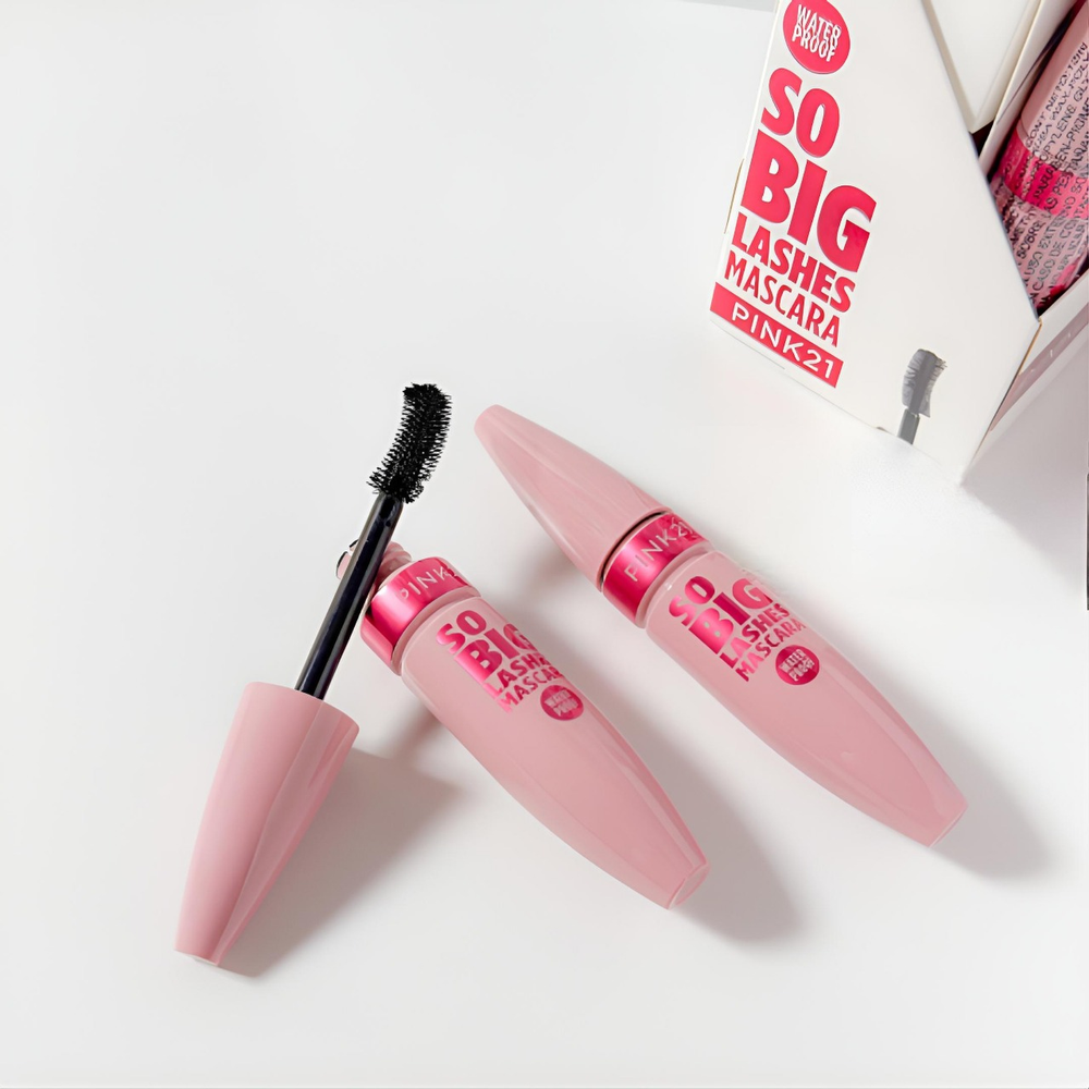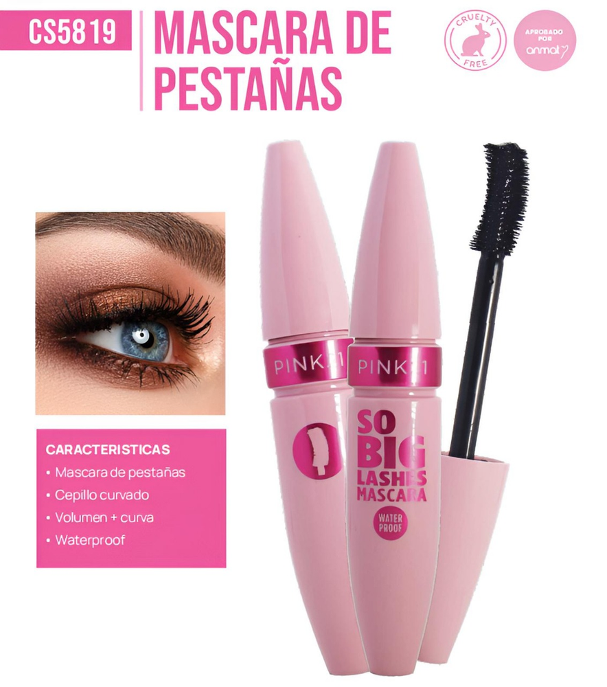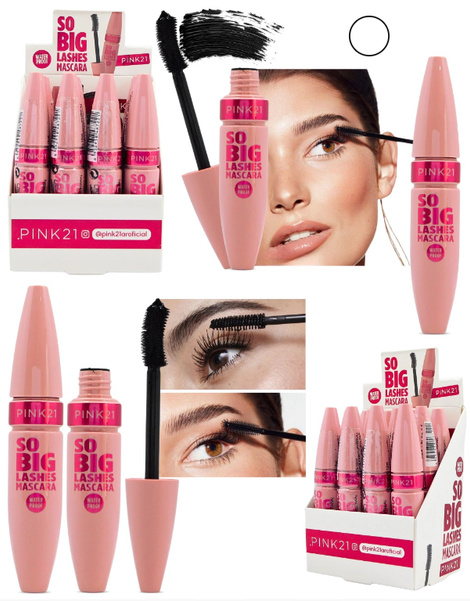 (Mascara para pestañas "So Big Lashes" de Pink 21 color negro con fórmula diseñada para dar volumen y definición a las pestañas, es a prueba de agua. Ideal para quienes buscan un maquillaje resistente y un acabado profesional).