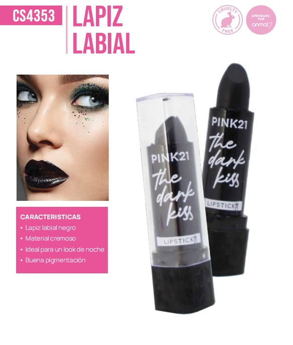 (Labial Negro con acabado mate que resalta la intensidad del color. Formato en barra para una aplicación precisa. Ingredientes hidratantes que cuidan los labios. Ideal para ocasiones especiales o uso diario. Aporta confianza y destaca la belleza natural).