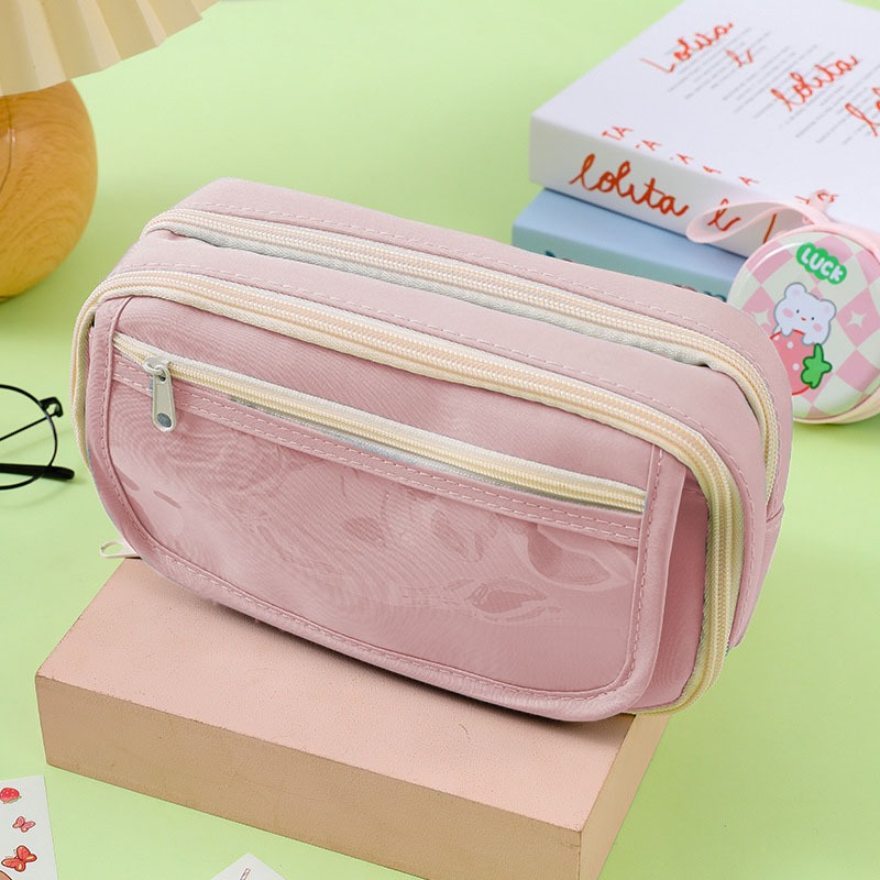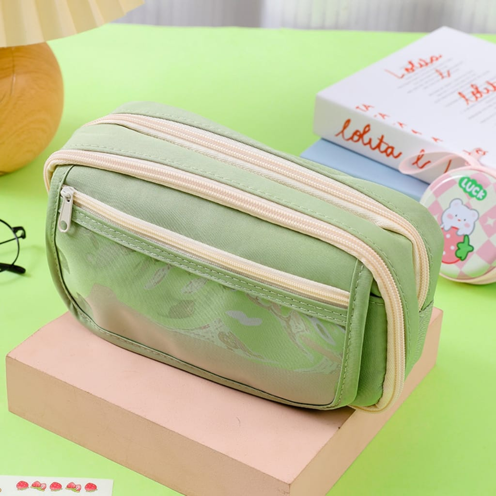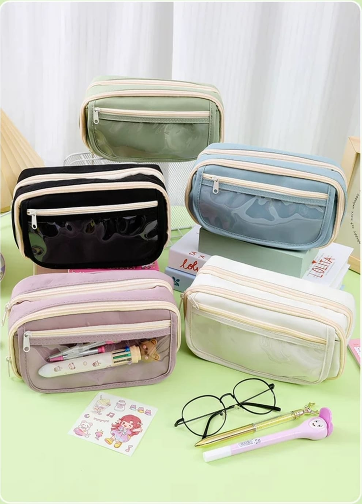 (Cartuchera doble cierre, uno de sus compartimientos cuenta con 5 separadores de red, tambien dispone dos bolsillo frontales, uno de ellos con visor).