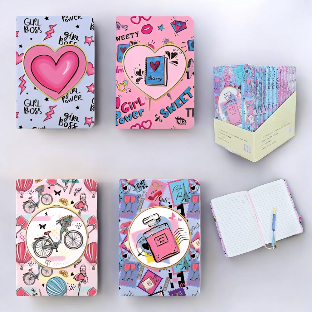 (Cuaderno A5 de 96 hojas rayadas, viene en diseños surtidos).