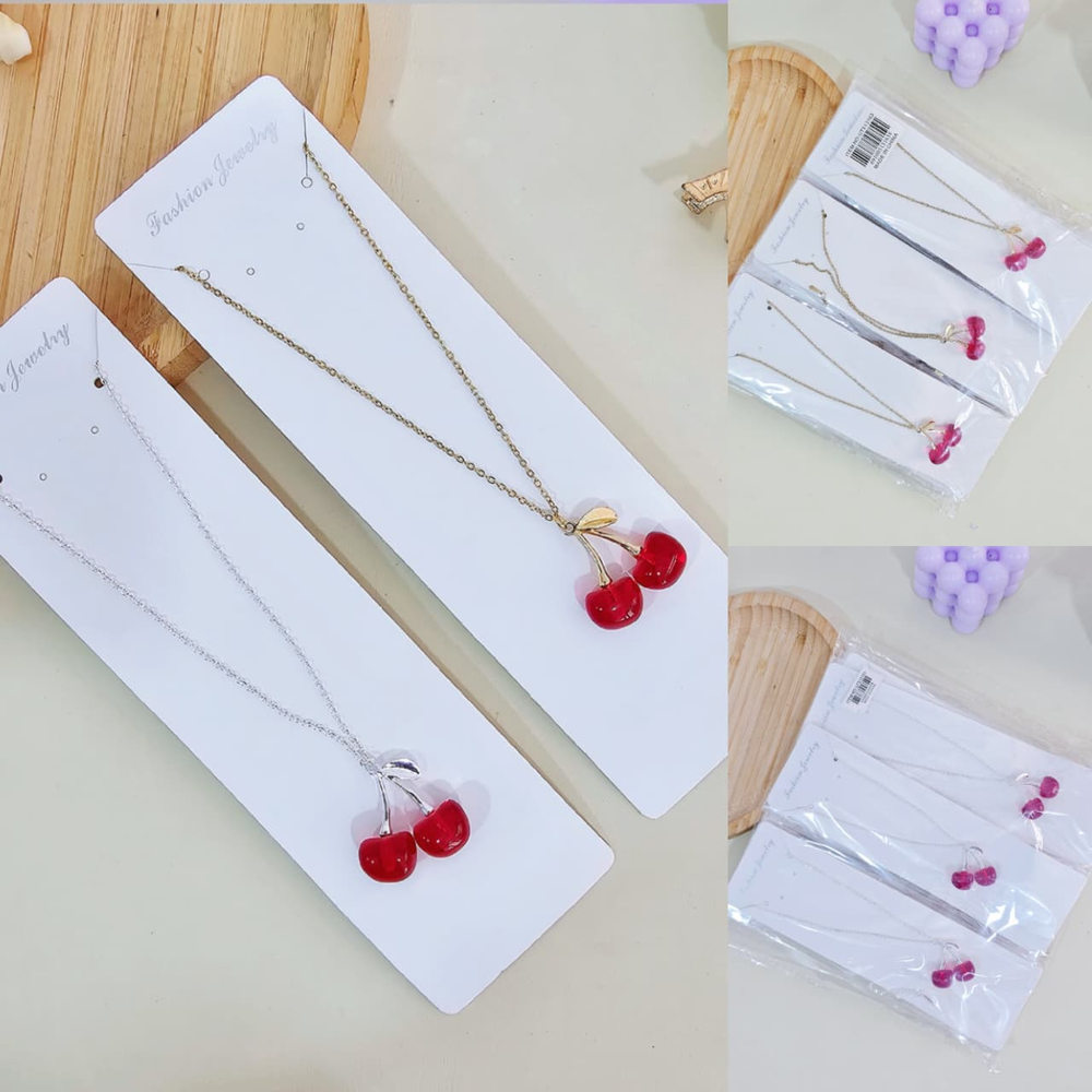 (Set de collar mas dije en forma de cereza grande, la cadenita puede ser color plateada o dorada).