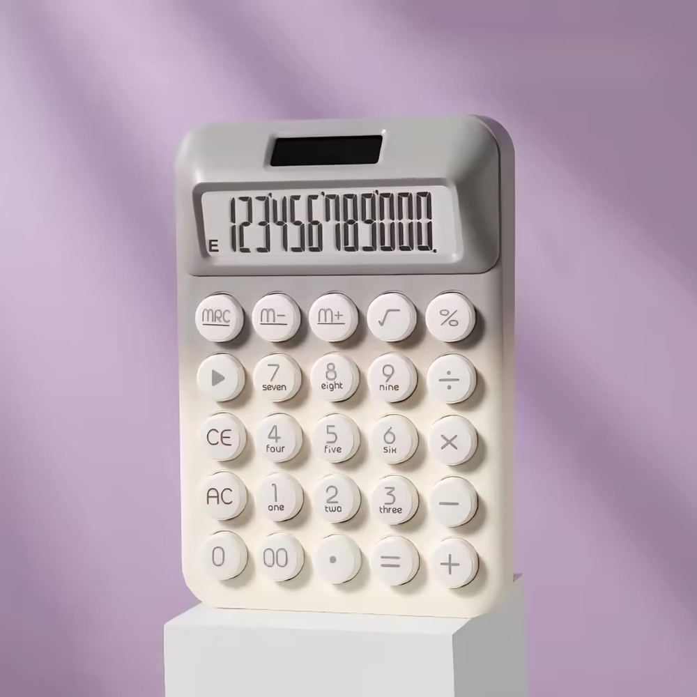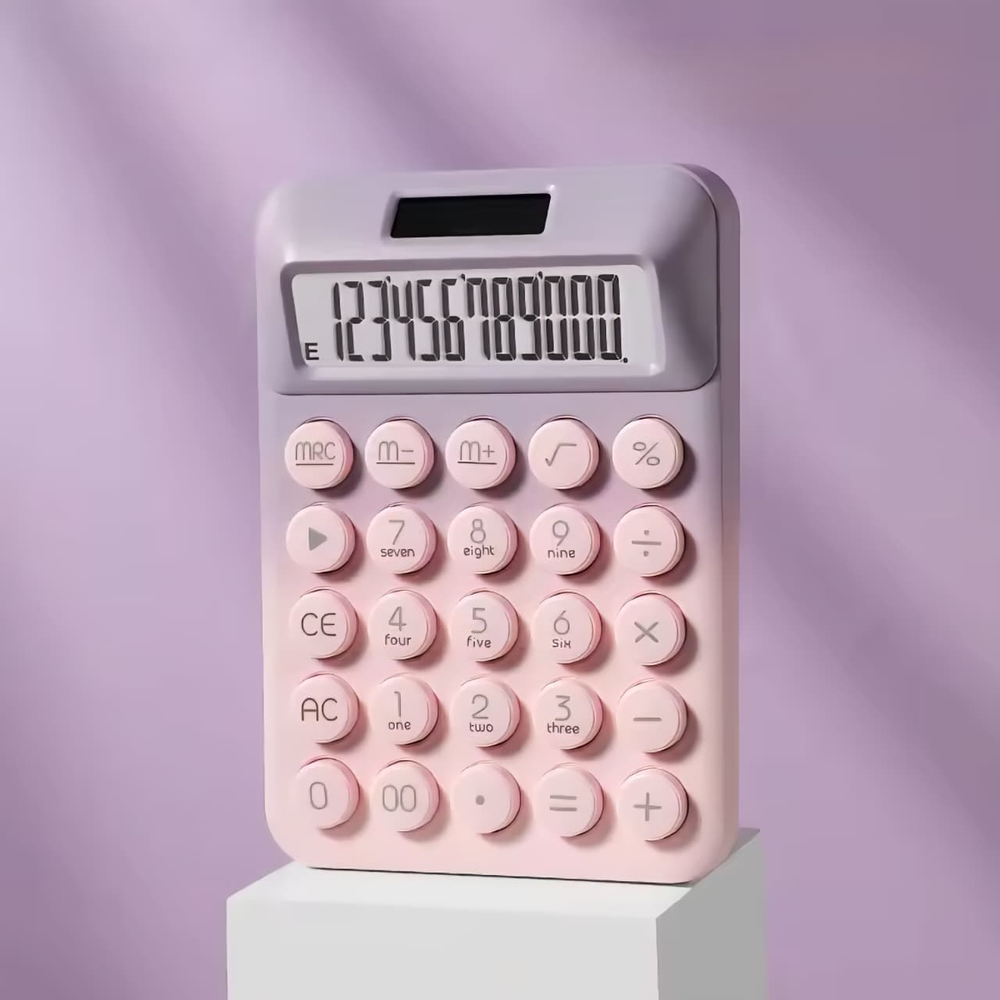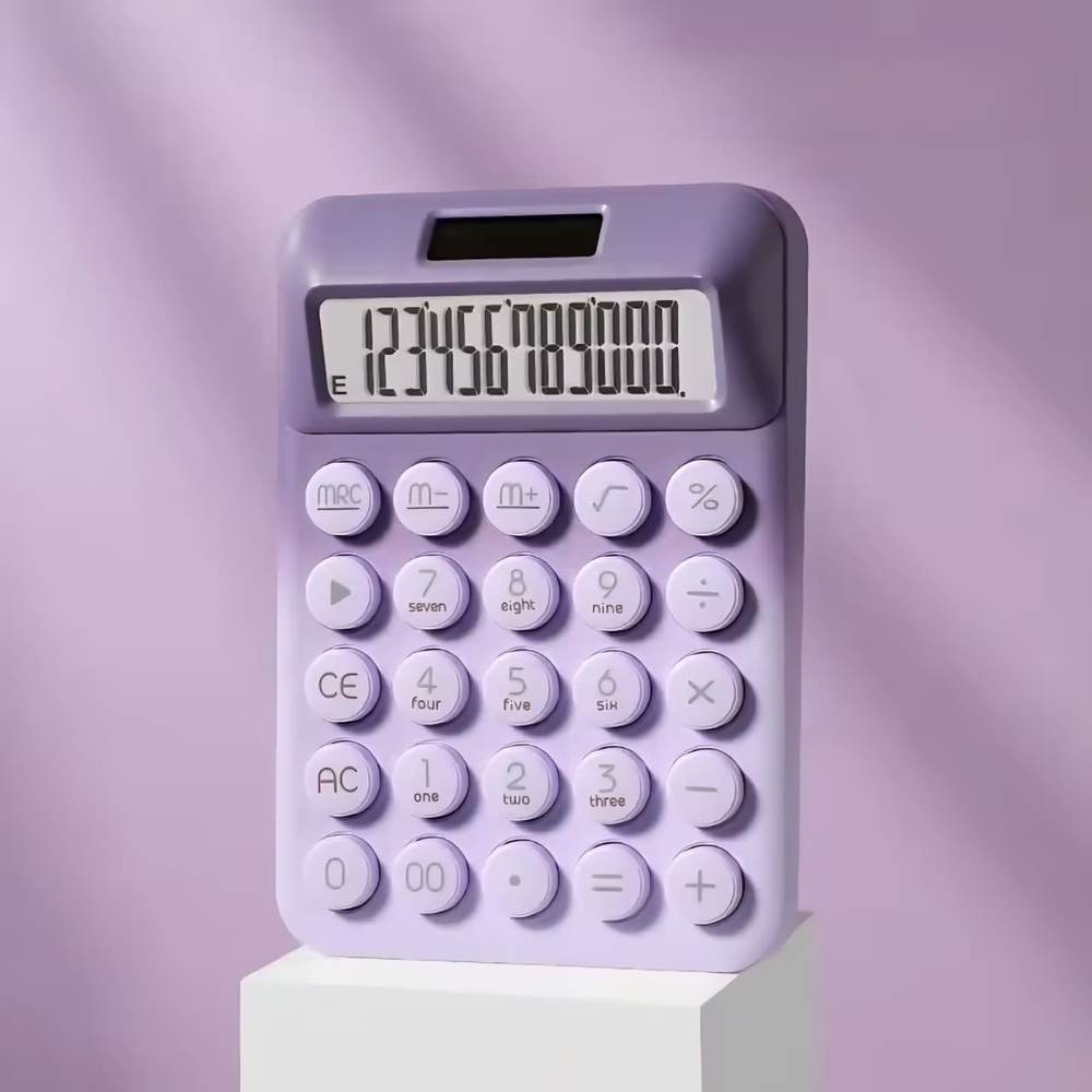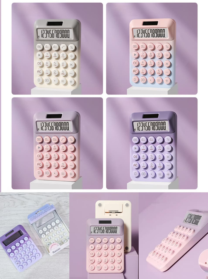 (Calculadoras con botones en colores degradé de 12 dígitos. Funciona con energía solar, cuenta con lugar para una pila AAA de respaldo para funcionar en condiciones de poca luz).