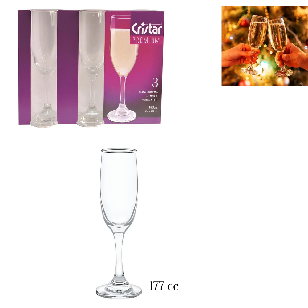 (Pack de 3 copas rioja para champaña "Cristar", con capacidad de 177cc)