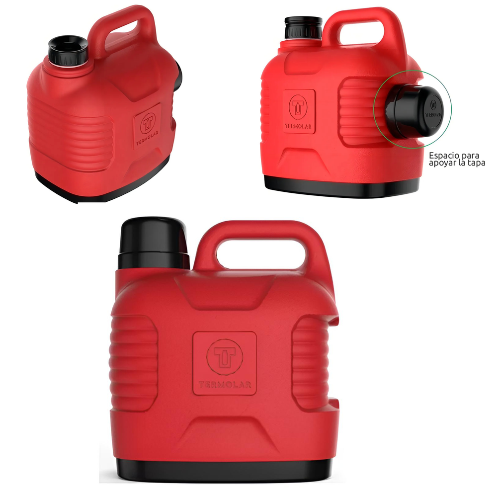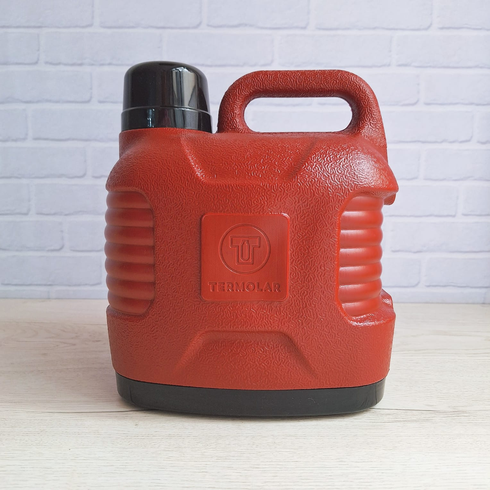 (Termo Termolar Super Termo de 5 Litros. Conserva el agua fría y caliente hasta por 10 horas. El exterior y el interior son de plástico con aislamiento térmico en PU, lo que garantiza durabilidad. Incluye una manija para un transporte cómodo y un sistema antigoteo. Cuenta con un vaso protector que se acopla temporalmente para servir con facilidad).