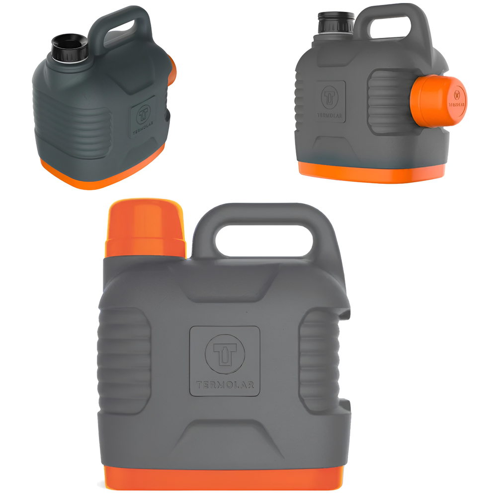 (Termo Termolar Super Termo de 5 Litros. Conserva el agua fría y caliente hasta por 10 horas. El exterior y el interior son de plástico con aislamiento térmico en PU, lo que garantiza durabilidad. Incluye una manija para un transporte cómodo y un sistema antigoteo. Cuenta con un vaso protector que se acopla temporalmente para servir con facilidad).