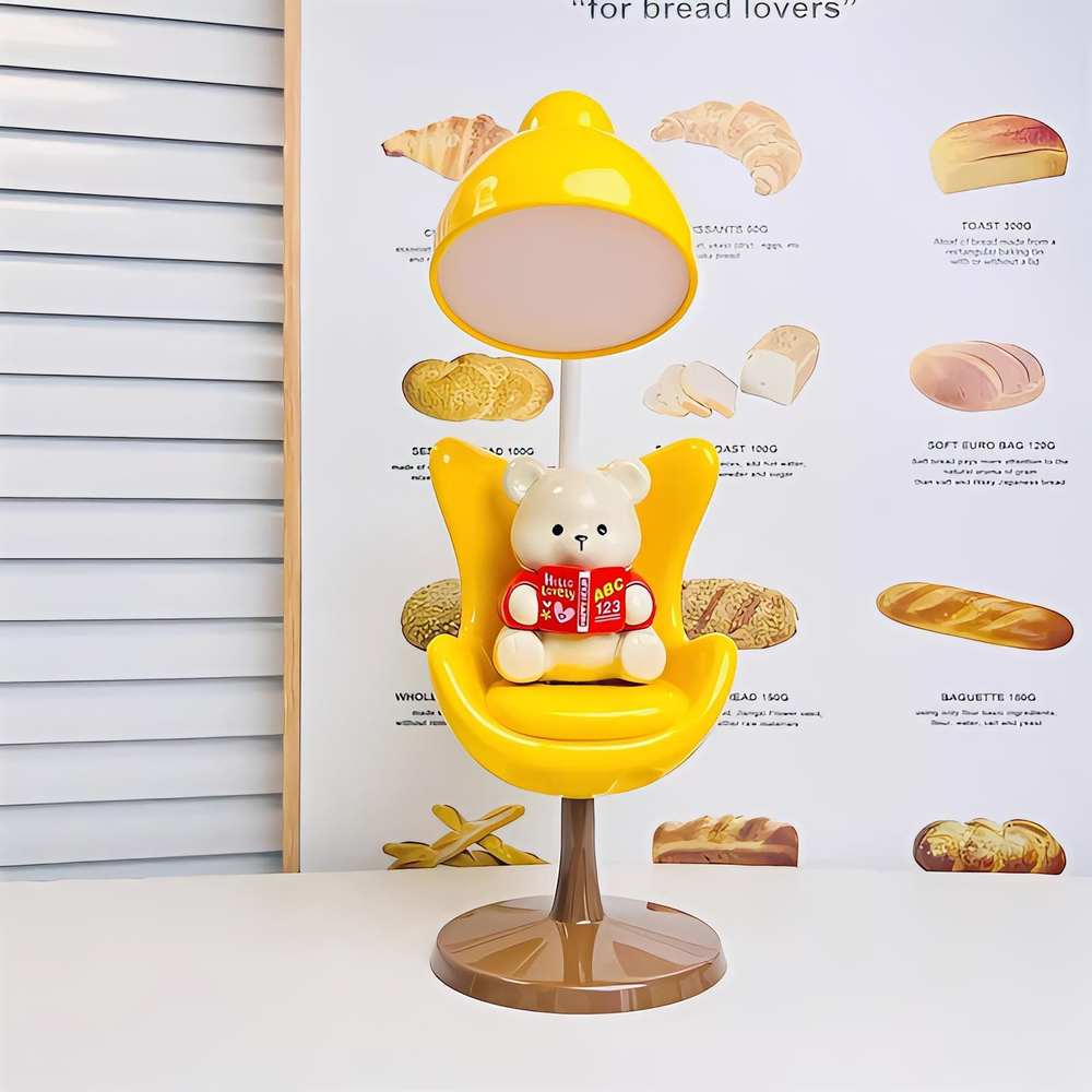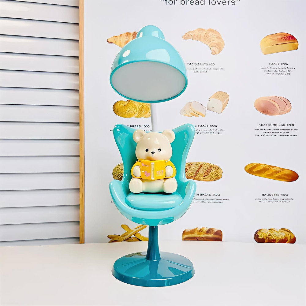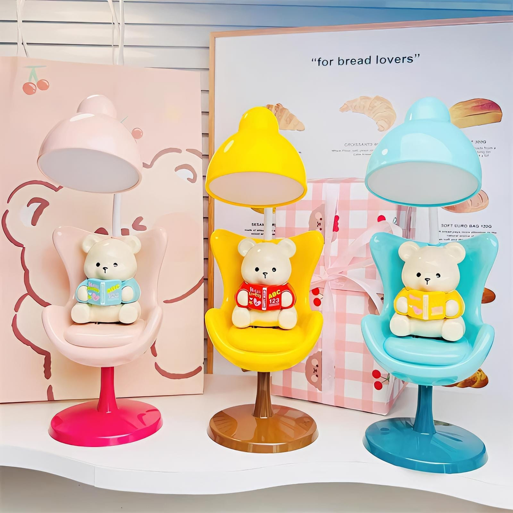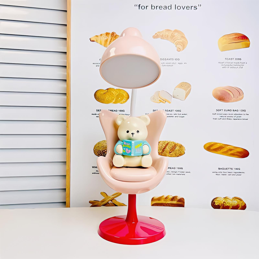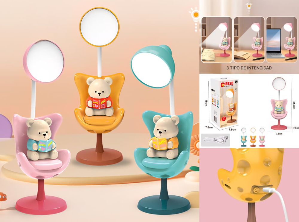 (Lámpara de escritorio con tres niveles de brillo. El cabezal se puede ajustar en 360° para dirigir la luz. Se carga a través de un cable USB (Incluido)).