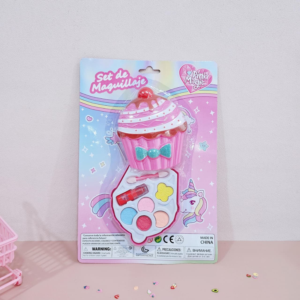 (Este set cuenta con una paleta de 5 sombras, un aplicador y un labial retráctil. Ideal para divertirse jugando).
