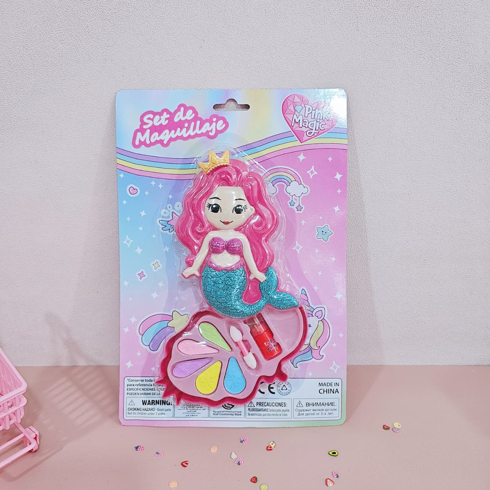(Este set cuenta con una paleta de 5 sombras, un aplicador y un labial retráctil. Ideal para divertirse jugando).