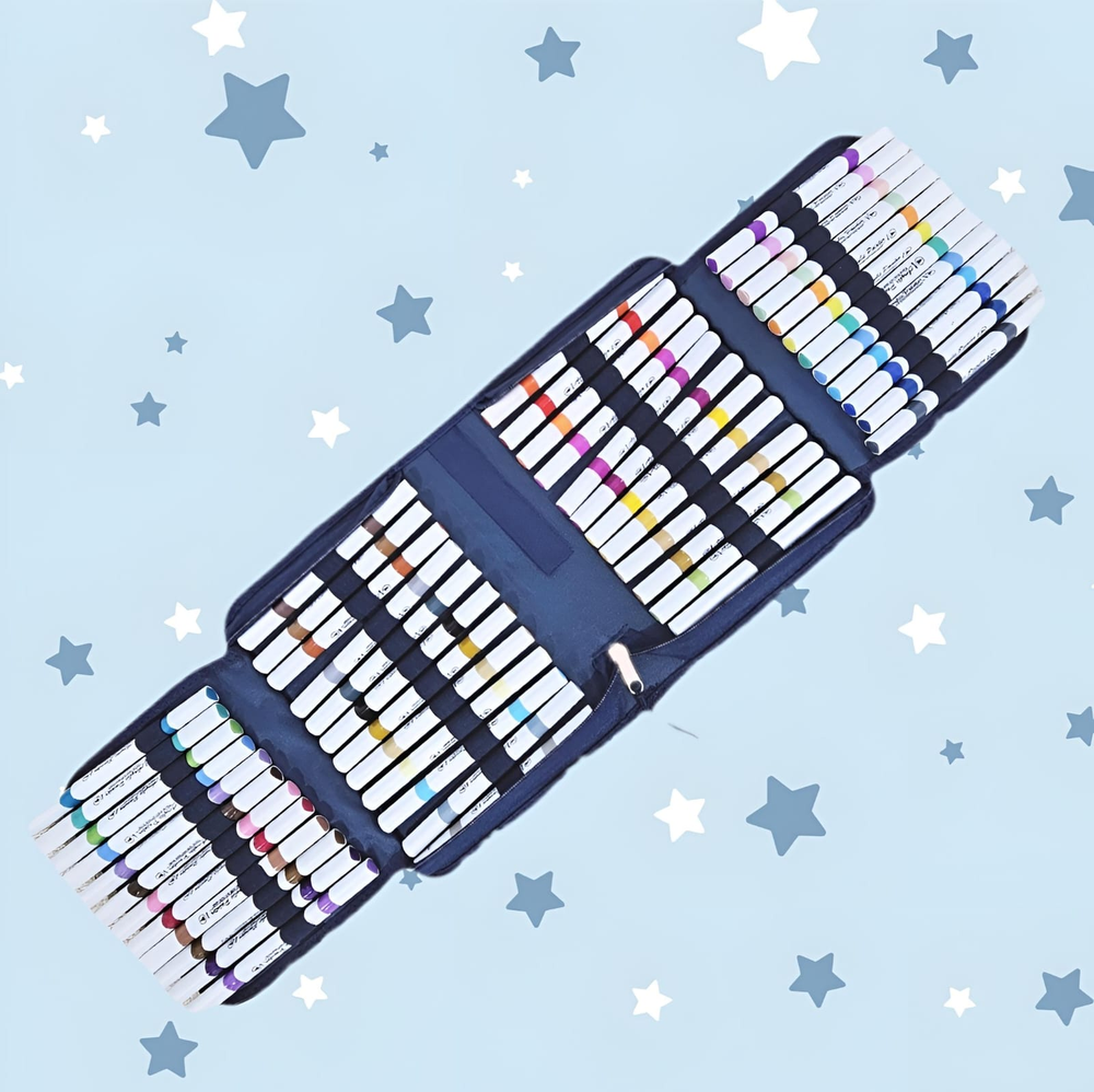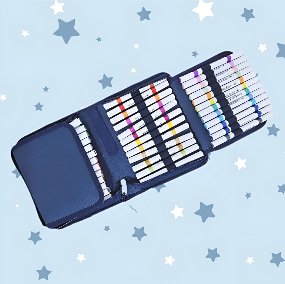 (Set por 48 unidades de marcadores acrílicos doble punta de colores).