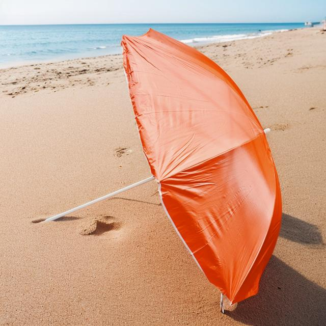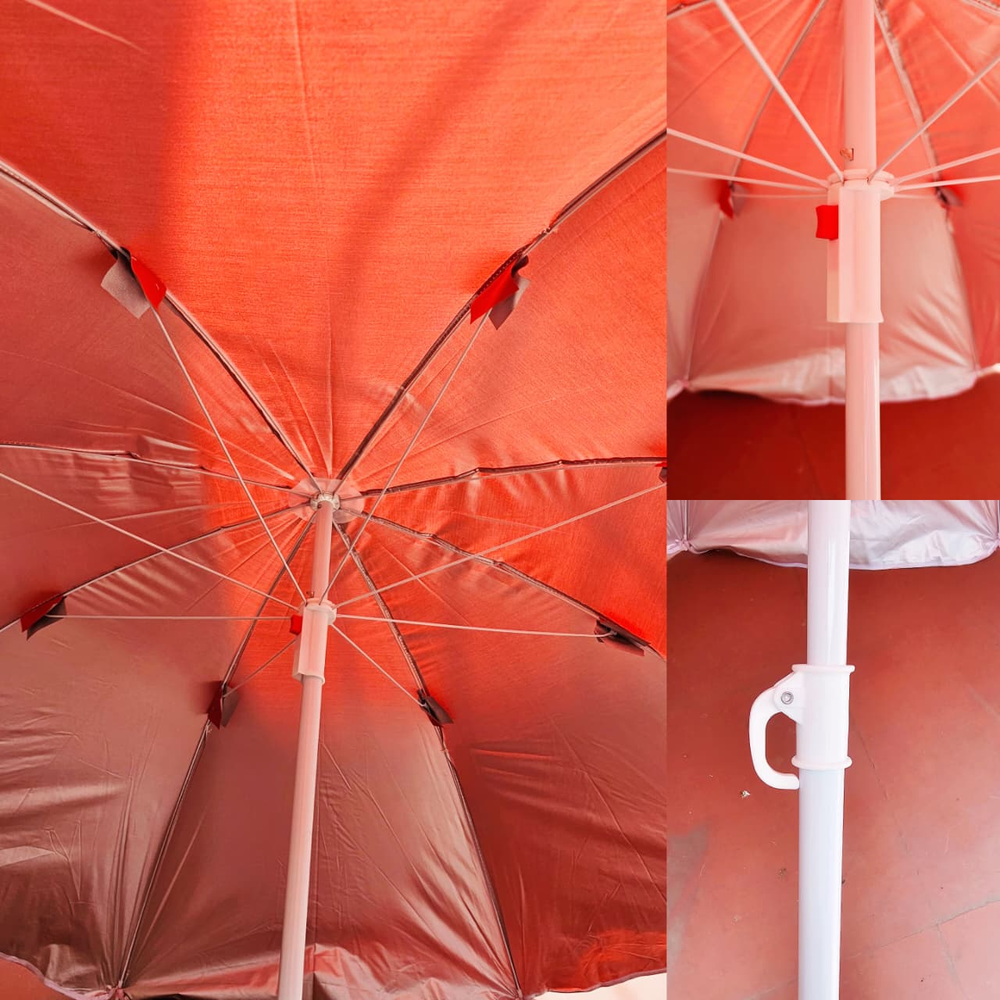 (Sombrilla para playa lisa, tiene ancla de arena integrada. Varillas y Altura regulable. Diámetro del caño 2cm/1.7cm aproximadamente).