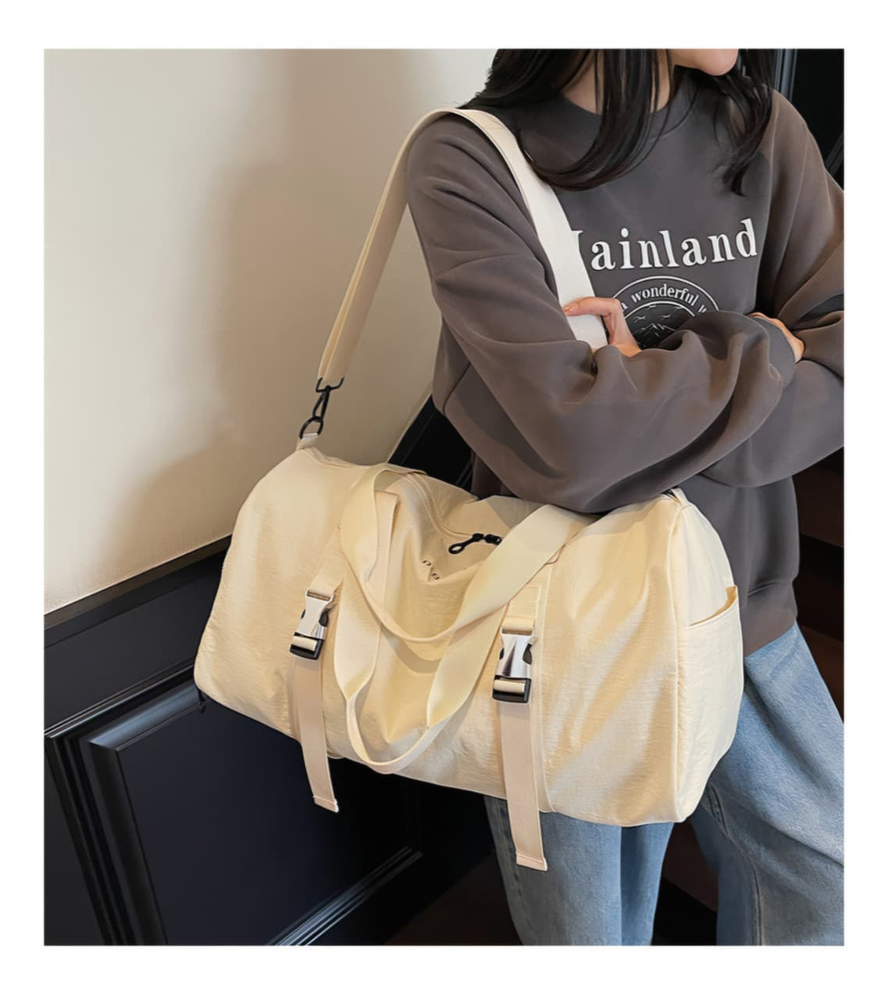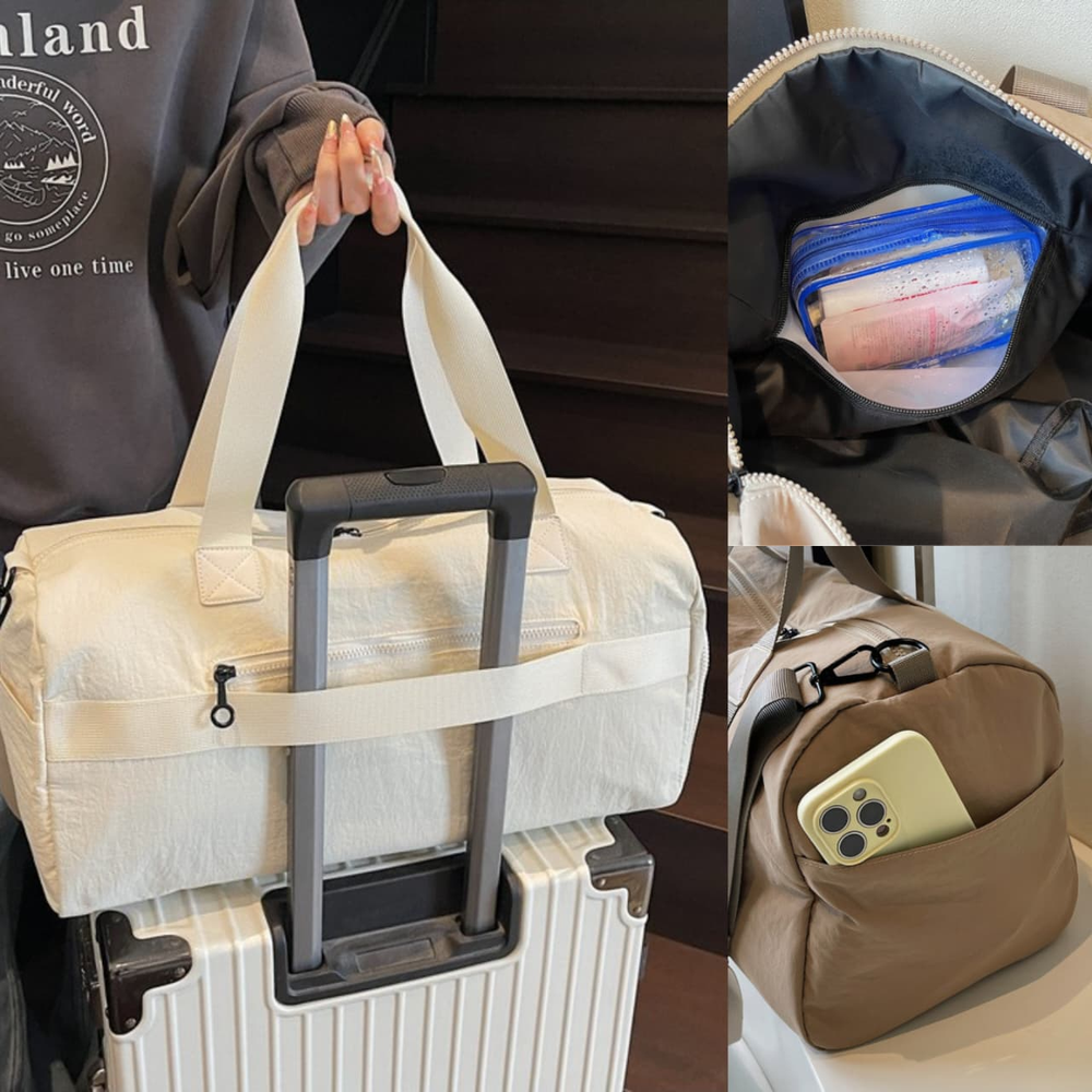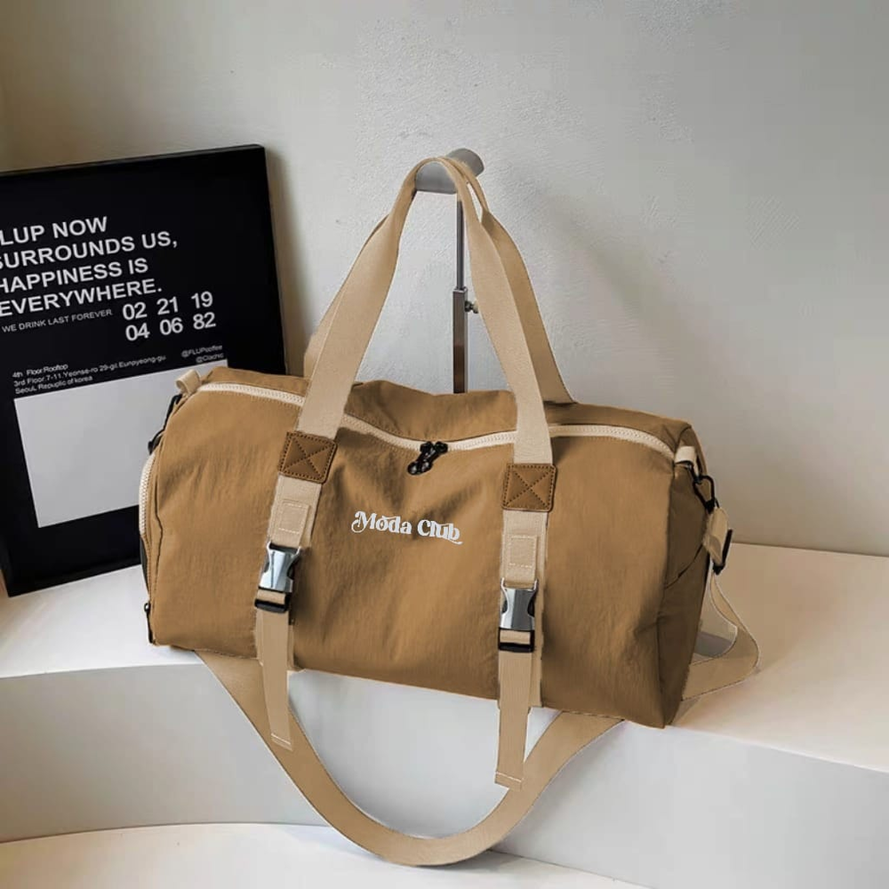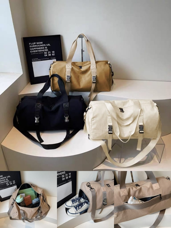 (Cuenta con 3 bolsillos internos, un bolsillo trasero, un bolsillo lateral, un compartimiento para zapatos e incluye correa larga).