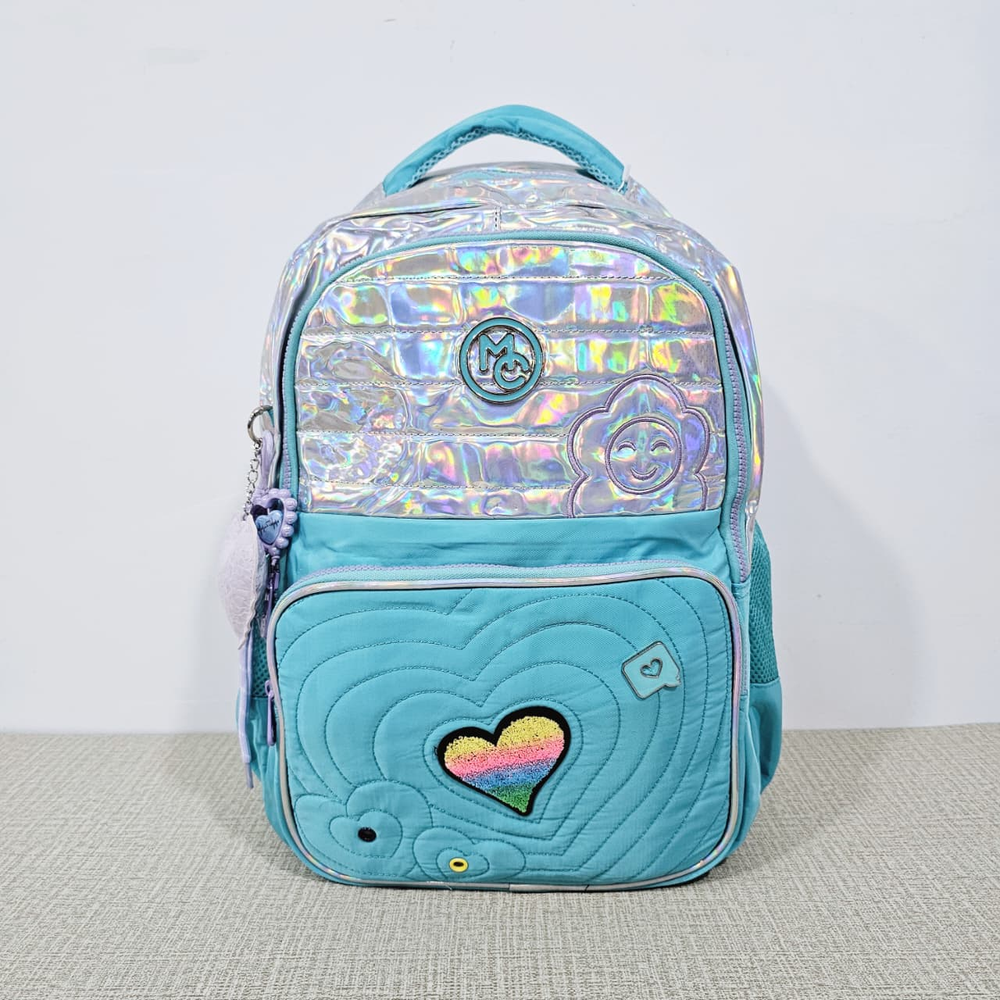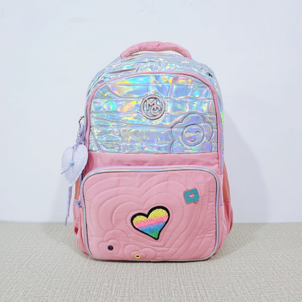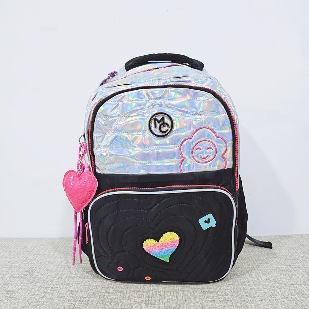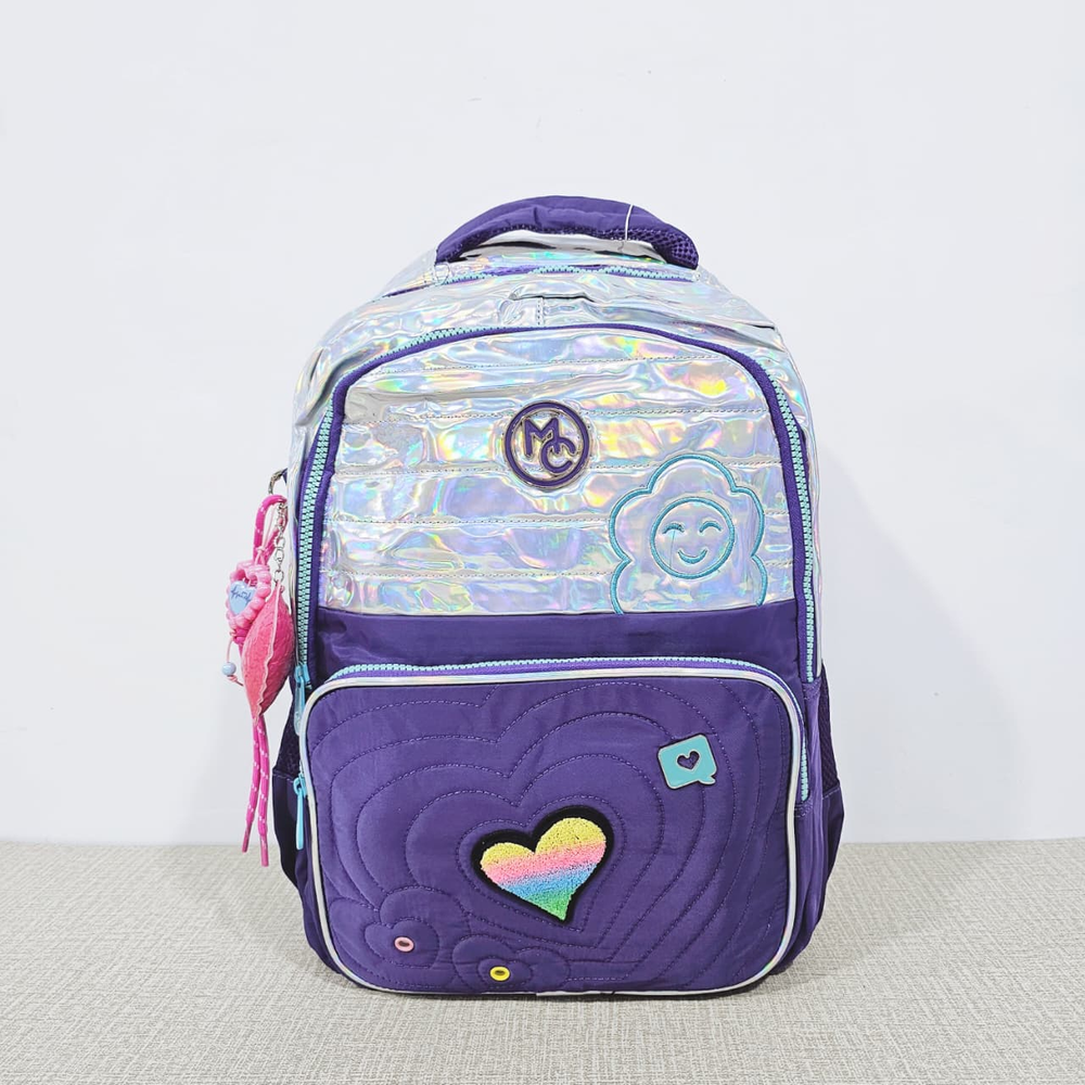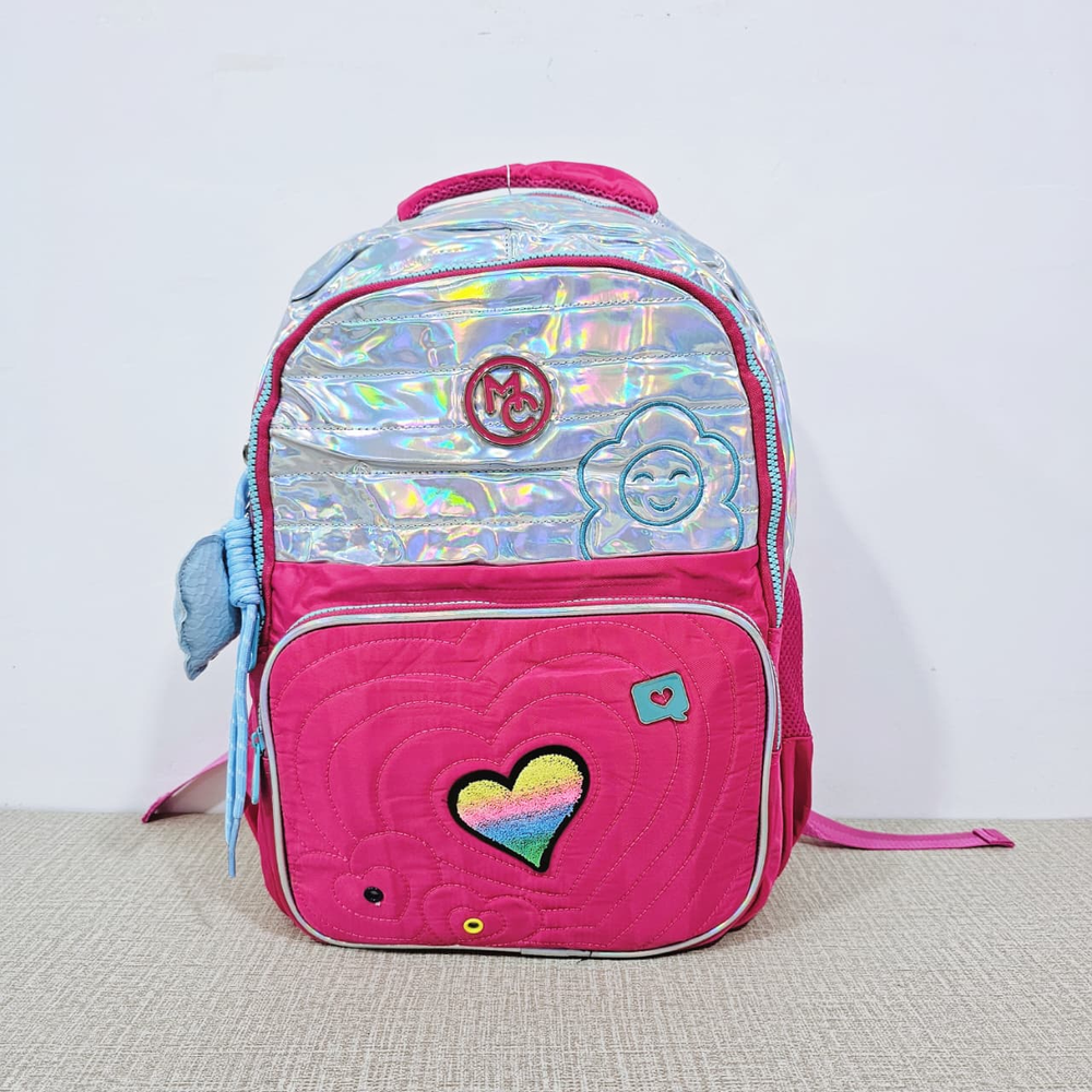 (Mochila infantil amplia, cuenta con dos bolsillos delanteros,compartimentos laterales e internos y un hermoso llavero en forma de corazón. Ideal para el nuevo ciclo escolar).
