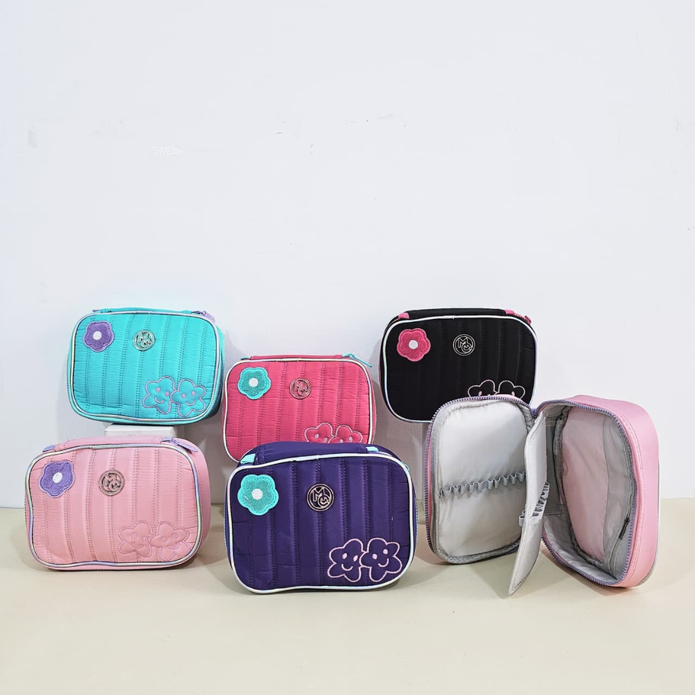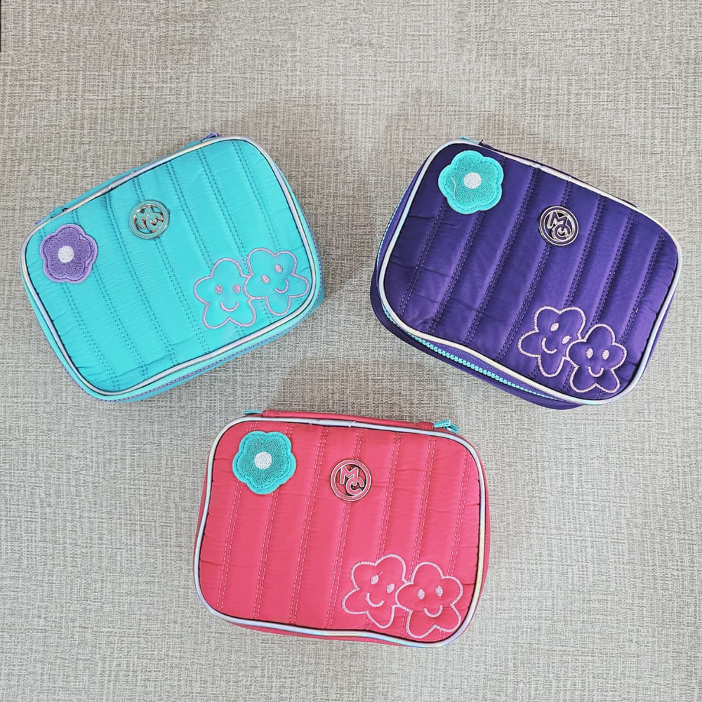 (Cartuchera de gran amplitud. Cuenta con divisiones para lápices y bolsillo con cierre ).
