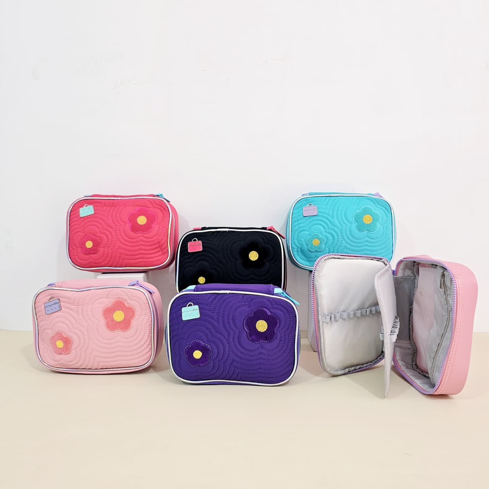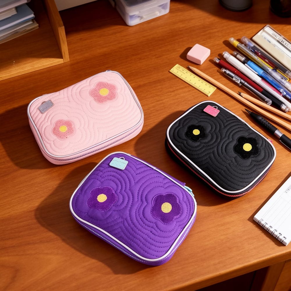 (Cartuchera de gran amplitud. Cuenta con divisiones para lápices y un bolsillo con cierre ).