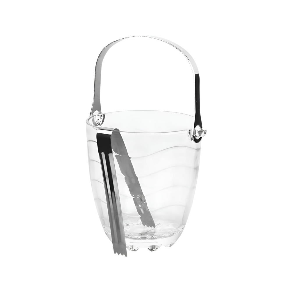 (Hielera de vidrio con manija y pinza de metal).