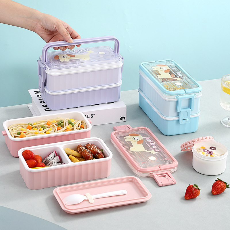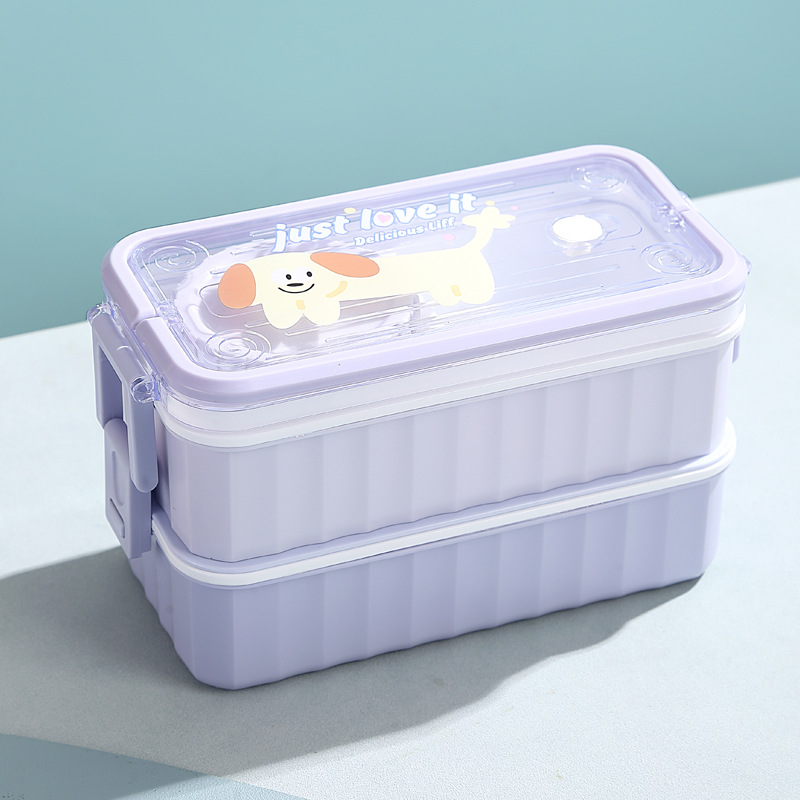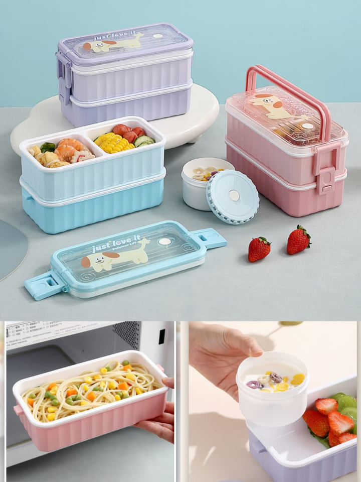 (Lonchera de dos pisos. Cuenta con divisores y un compartimento circular chico que es ideal para colocar el postre, aderezos o lo que usted desee. Apto microondas y Lavavajillas).